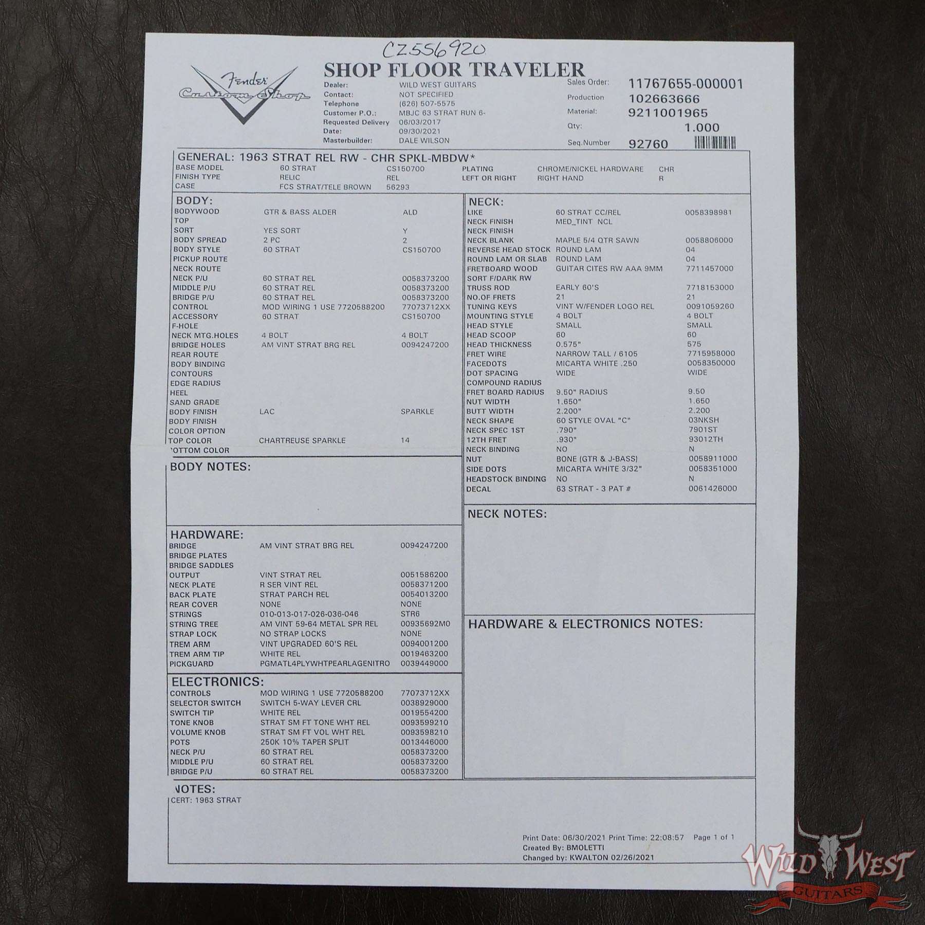 Fender Custom Shop Dale Wilson Masterbuilt 1963 Stratocaster Relic Chartreuse Sparkle