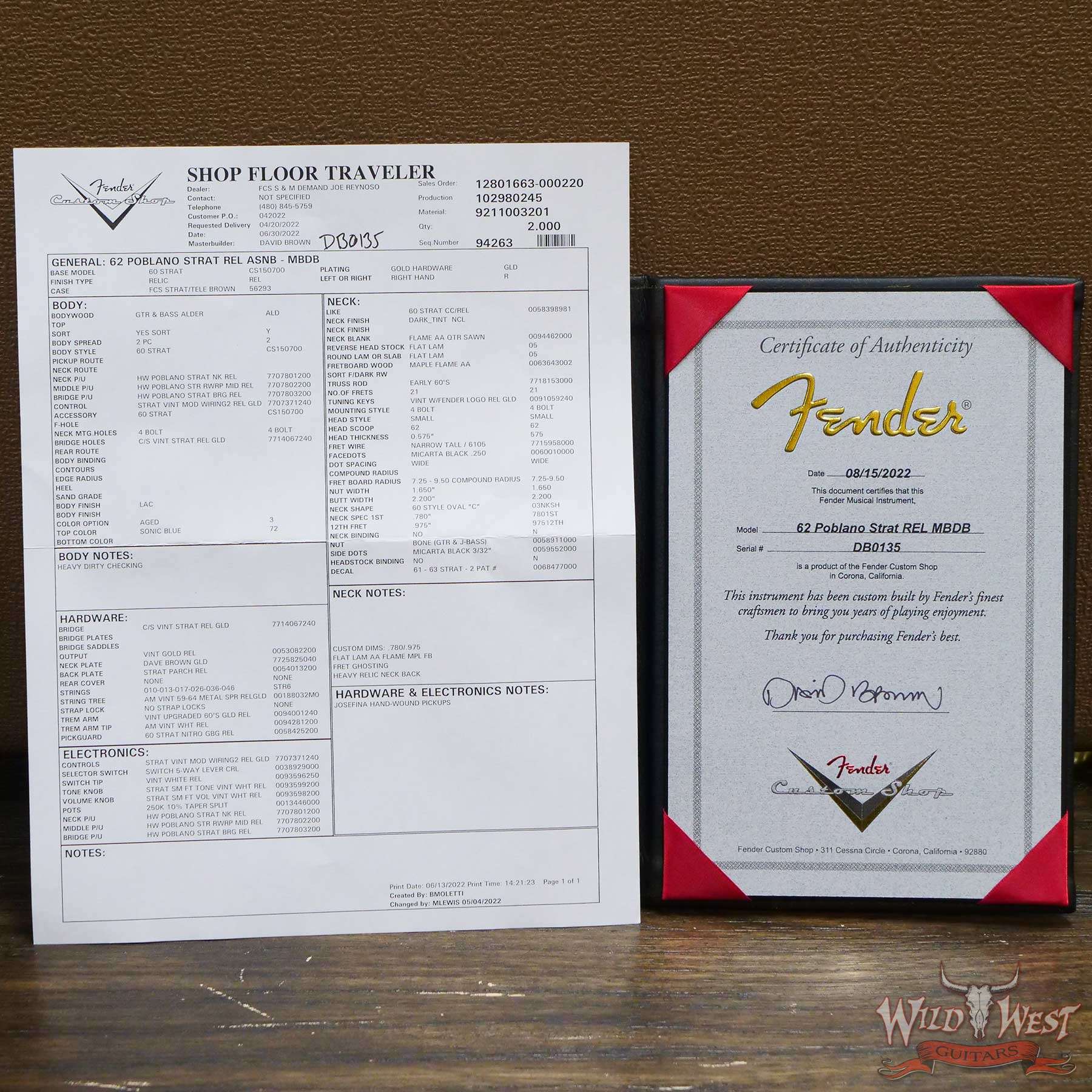 Fender Custom Shop David Brown Masterbuilt 1962 Poblano Stratocaster Josefina Hand-Wound Pickups Relic Aged Sonic Blue