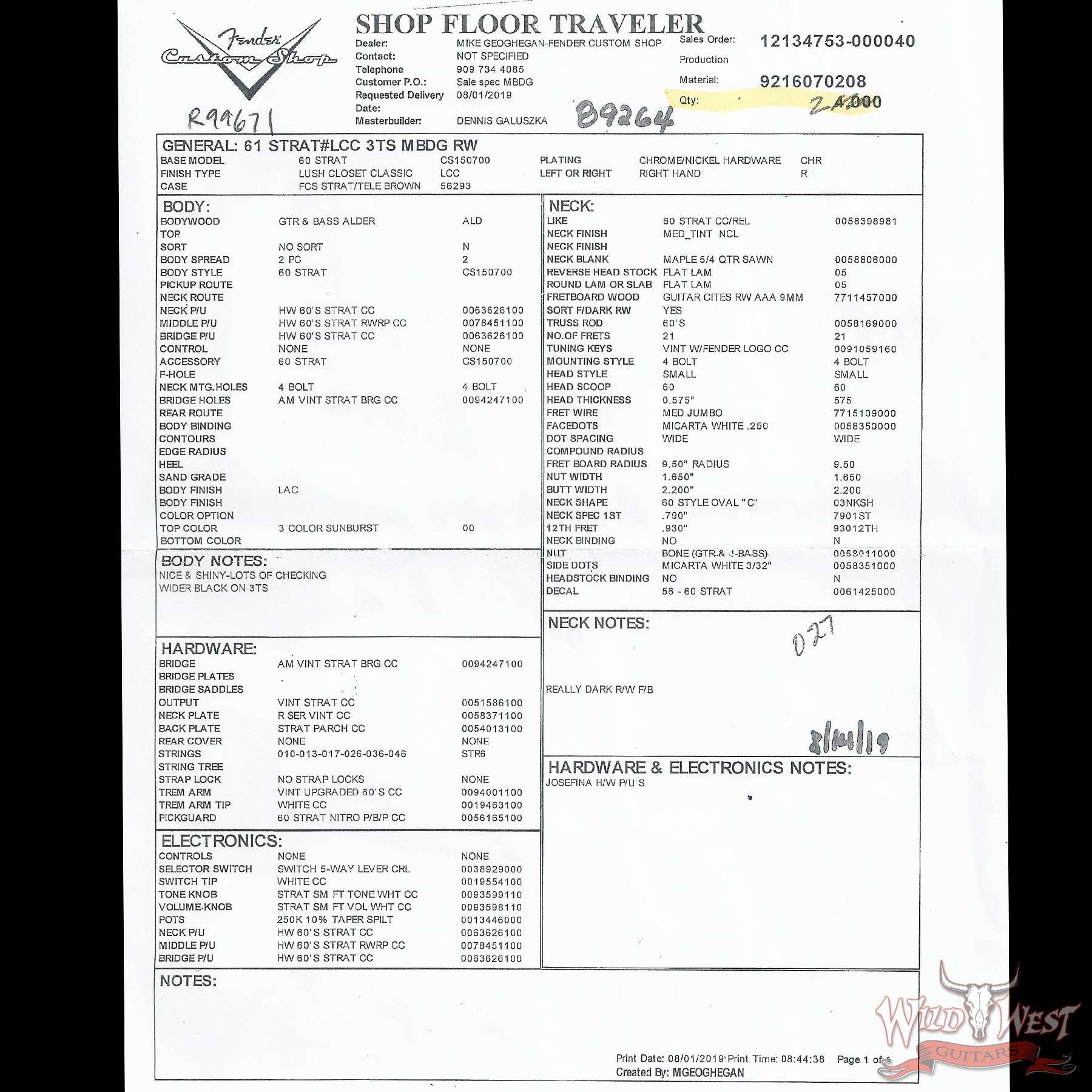 Model: Fender Custom Shop MBDG 1961 Stratocaster LCC