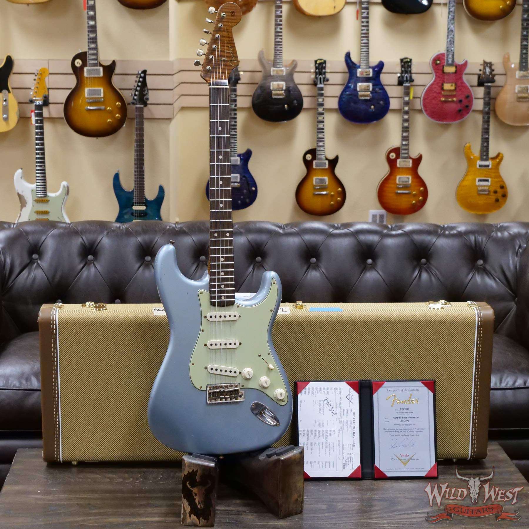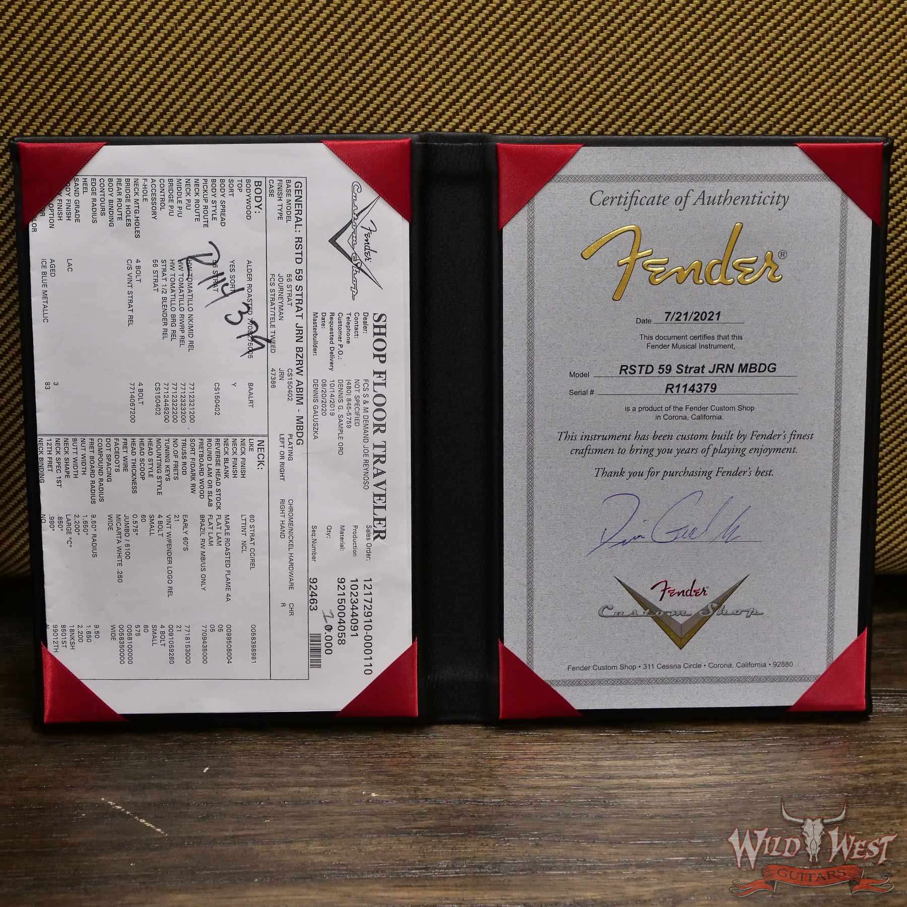 Fender Custom Shop Dennis Galuszka Masterbuilt Roasted 1959 Stratocaster Brazilian Rosewood Slab Board Hand-Wound PUs Journeyman Relic Aged Blue Ice Metallic