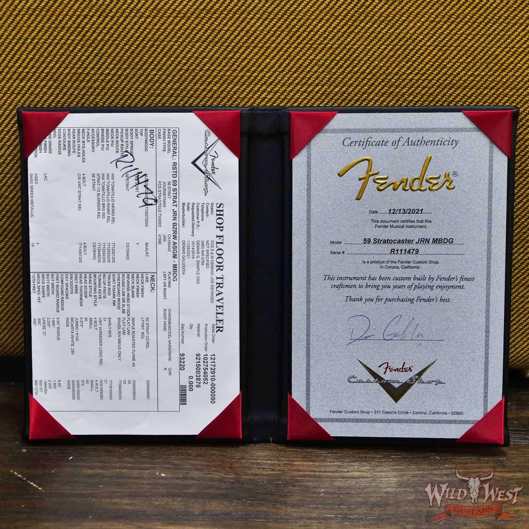 Fender Custom Shop Dennis Galuszka Masterbuilt Roasted 1959 Stratocaster Brazilian Rosewood Slab Board Hand-Wound PUs Journeyman Relic Faded Aged Sgerwood Green