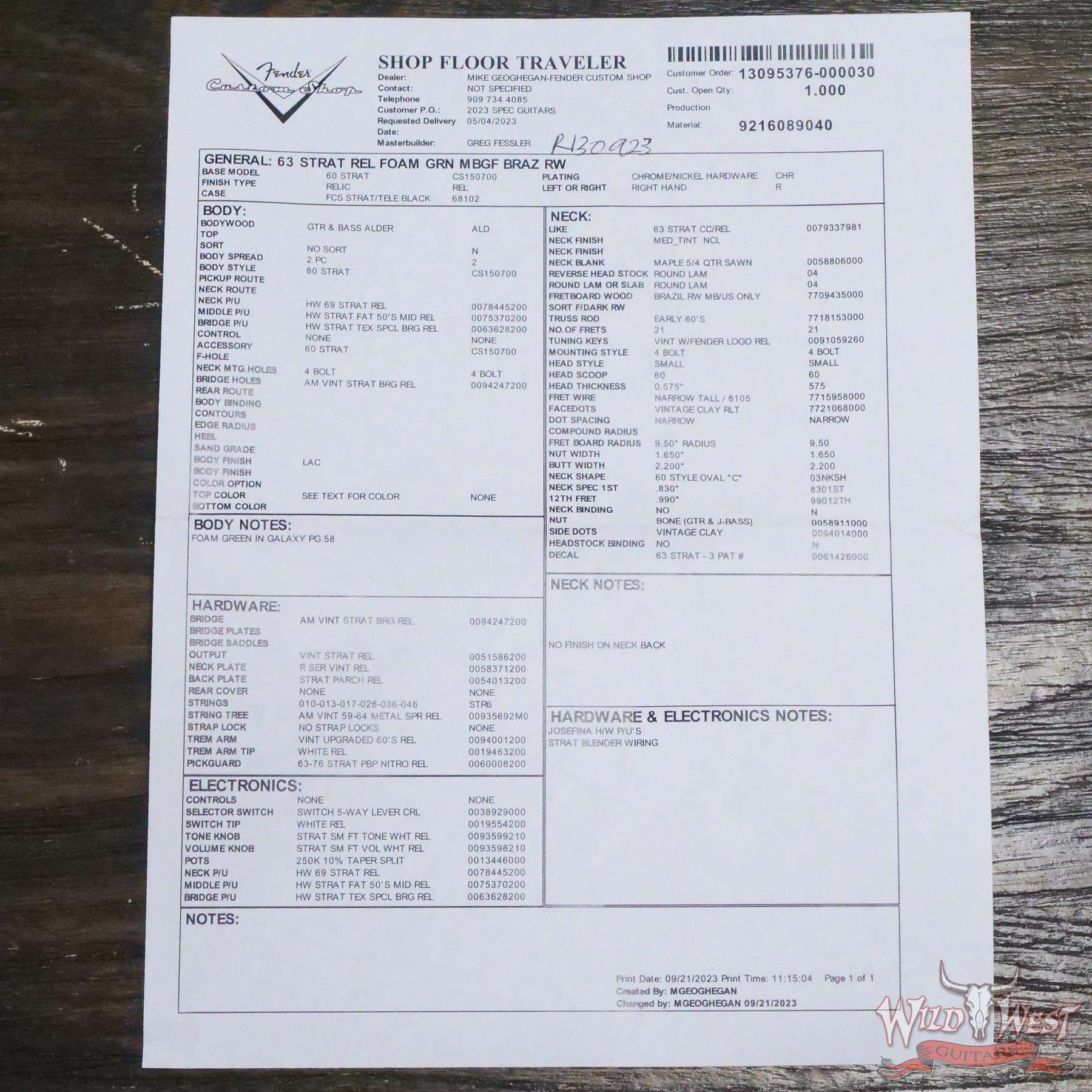 Builder | Fender Custom Shop – Greg Fessler |