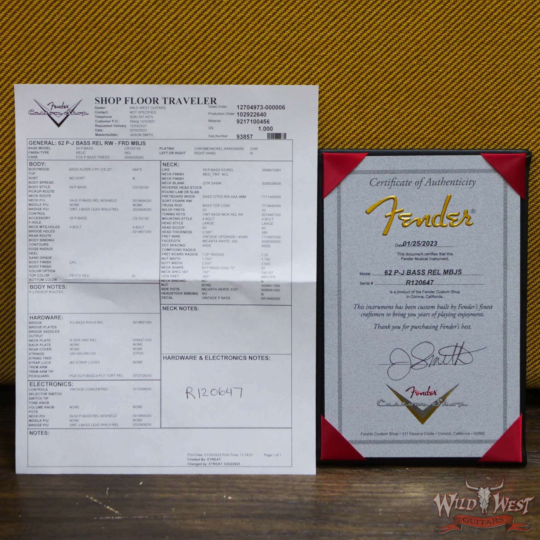 Fender Custom Shop Jason Smith Masterbuilt 1962 Precision Bass P-Bass P/J Pickups Relic Fiesta Red
