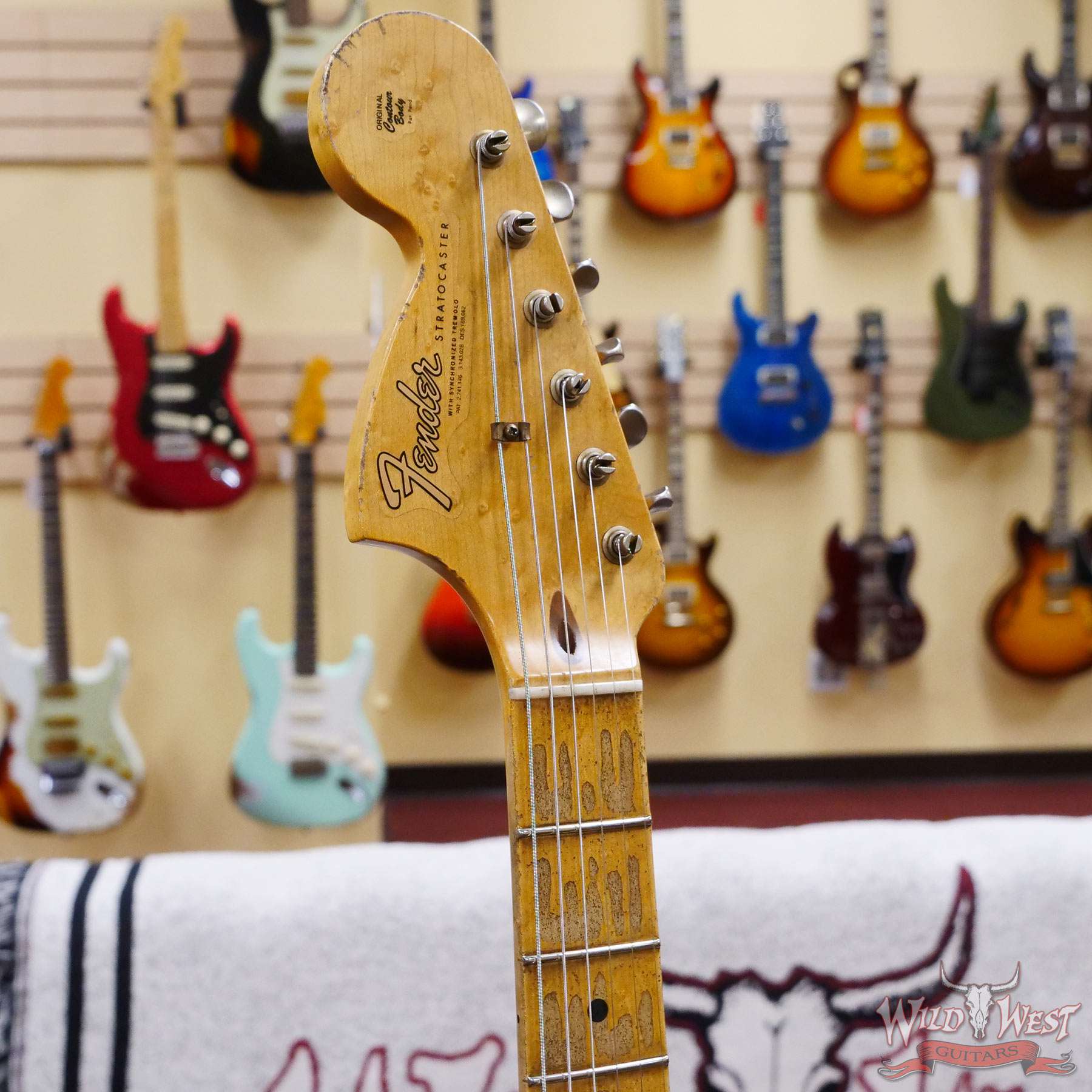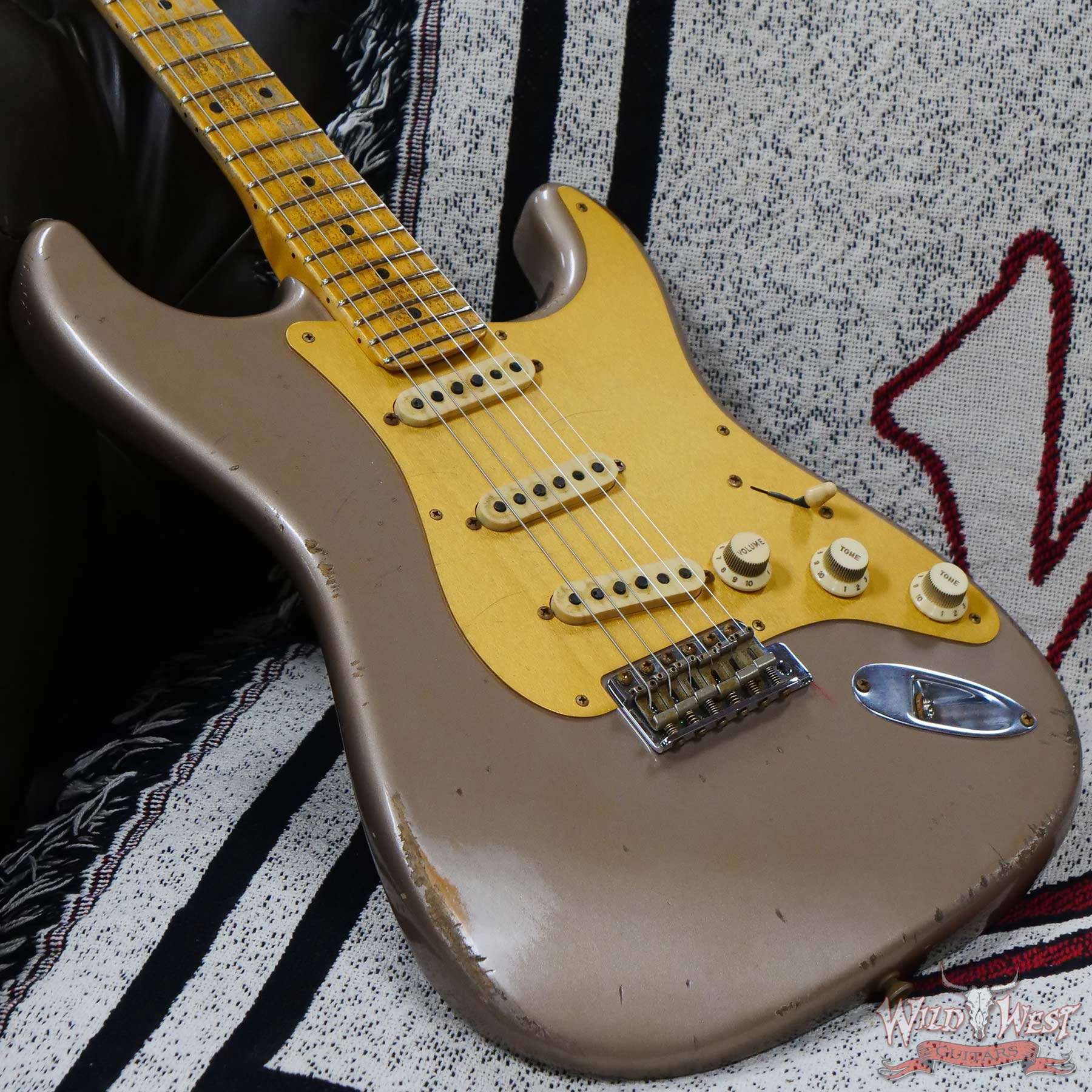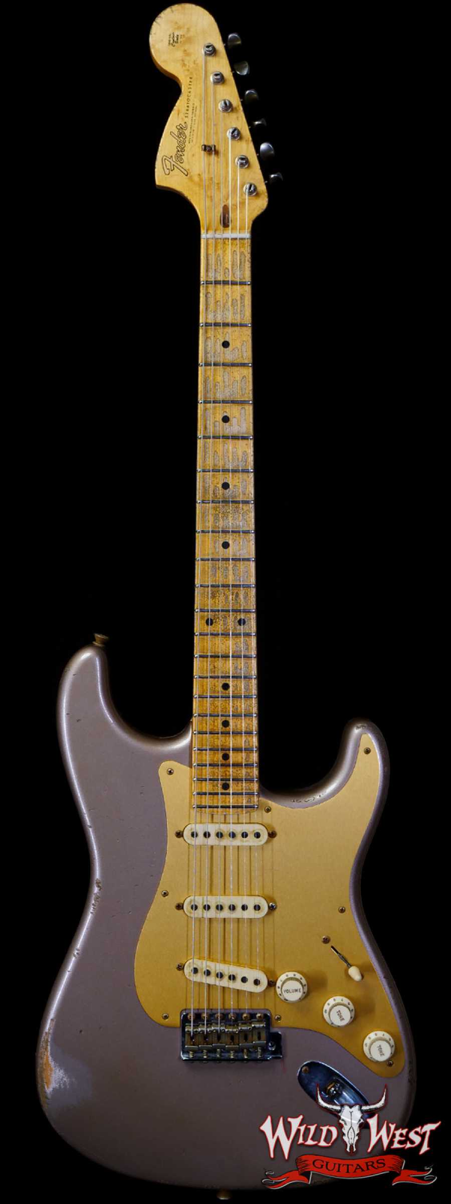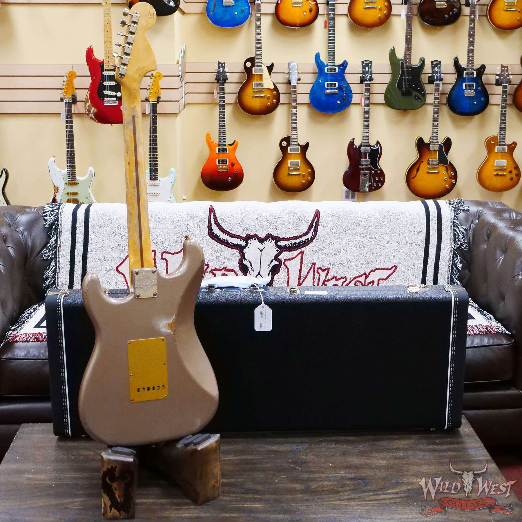 Model: Fender Custom Shop MBJS 1965 Stratocaster Maple Neck Reverse Headstock Relic Shoreline Gold