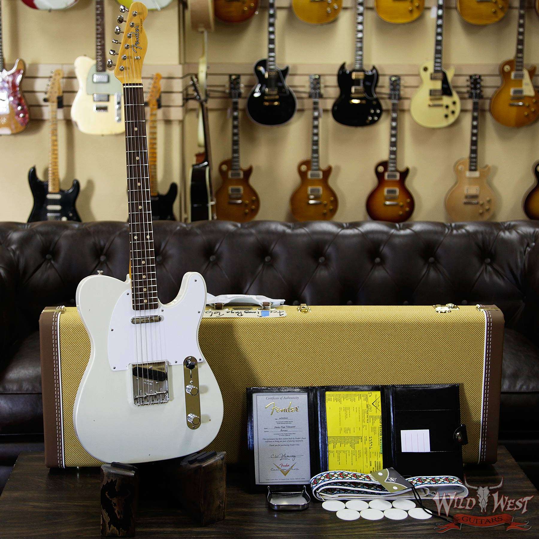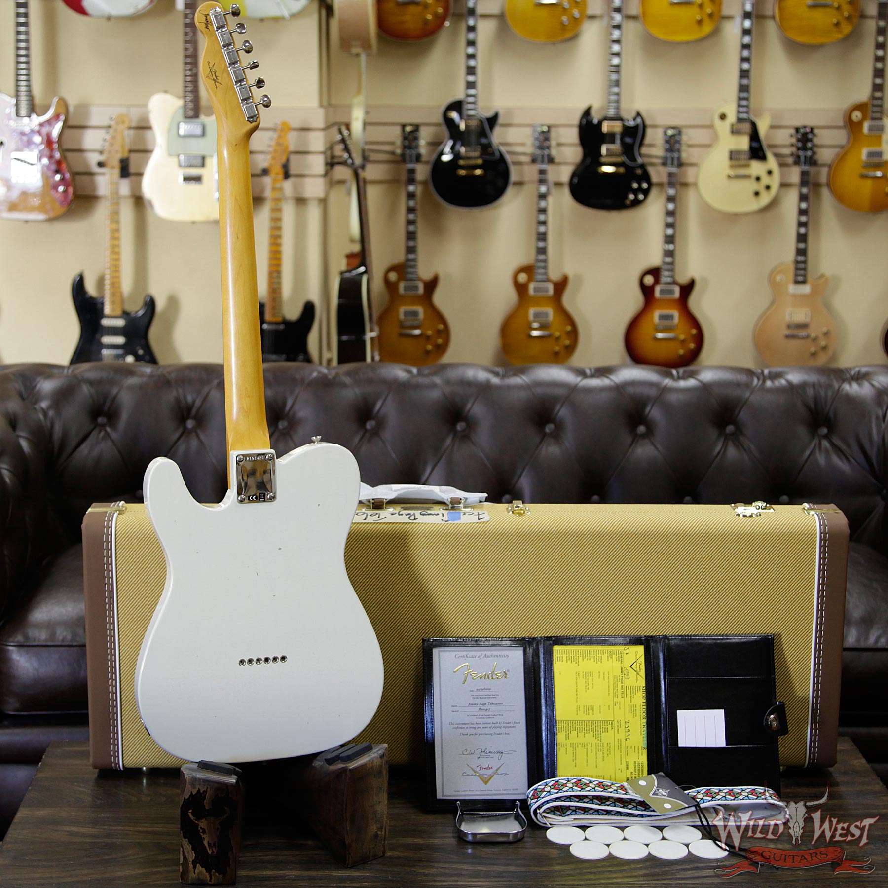Model: Fender Custom Shop Jimmy Page Signature Telecaster Journeyman Relic AAA Rosewood Slab Board White Blonde