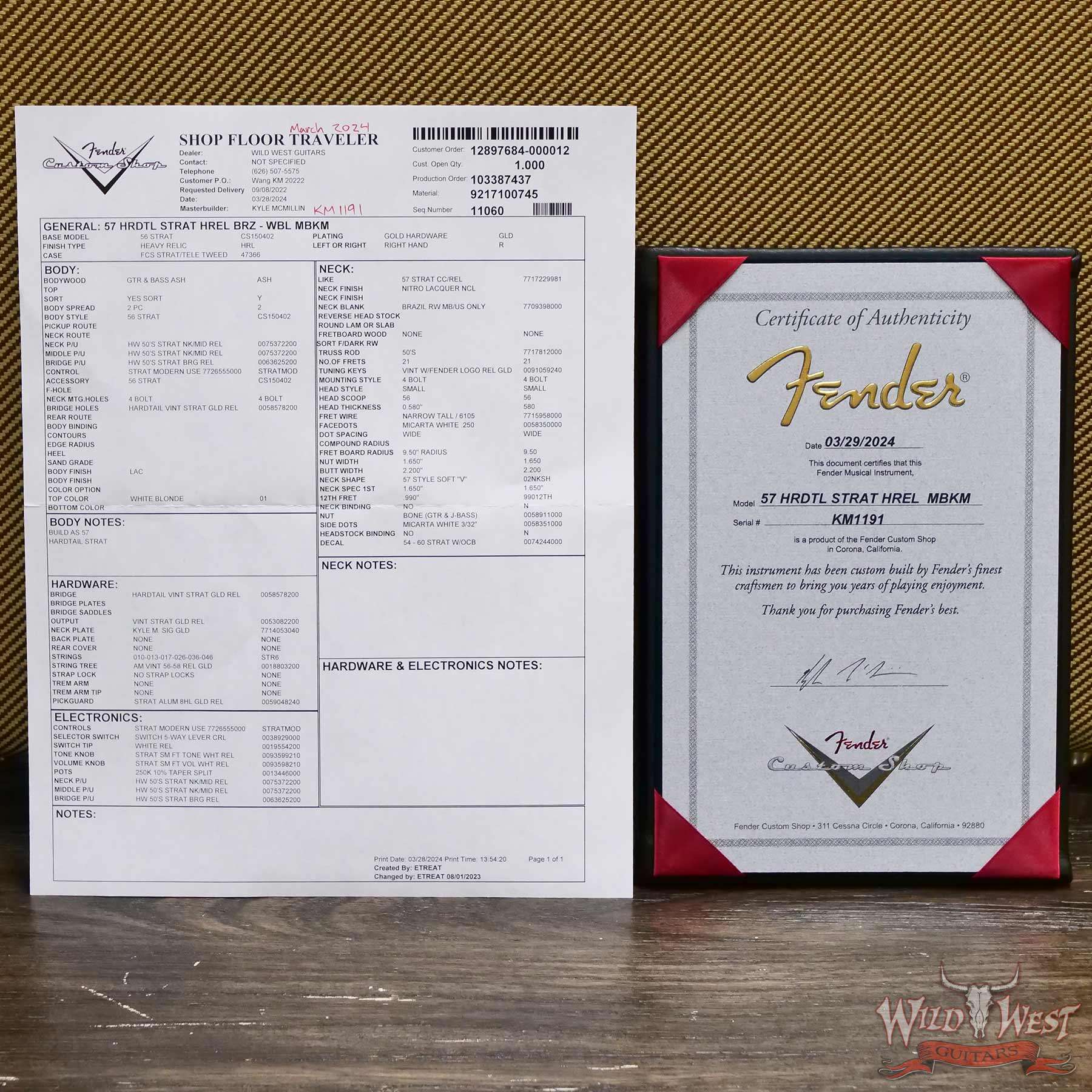 Fender Custom Shop Kyle McMillin Masterbuilt 1957 Hardtail Stratocaster Brazilian Rosewood Neck Heavy Relic White Blonde 6.75 LBS (US Only / No International Shipping)