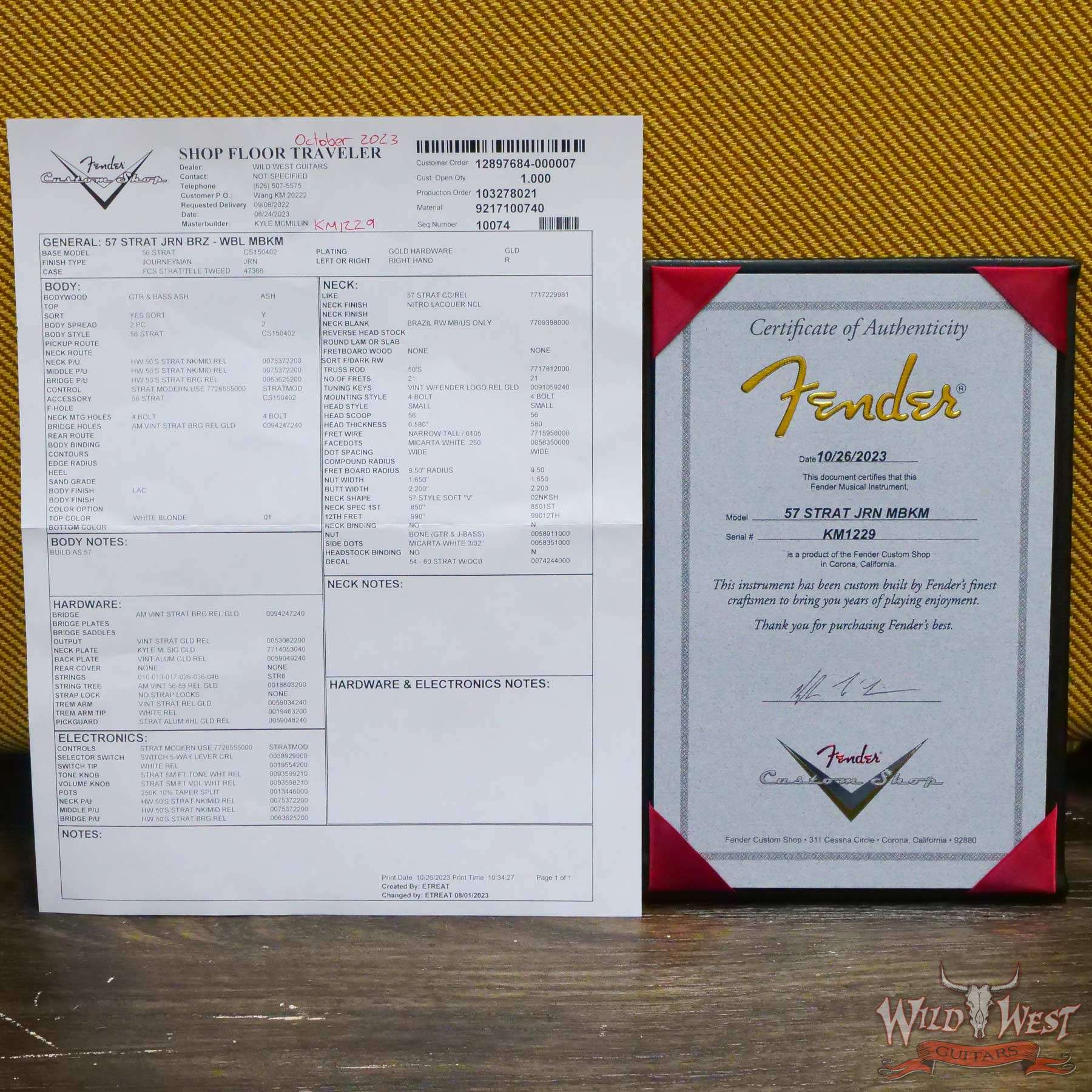 Fender Custom Shop Kyle McMillin Masterbuilt 1957 Stratocaster Brazilian Rosewood Neck Journeyman Relic Aged White Blonde