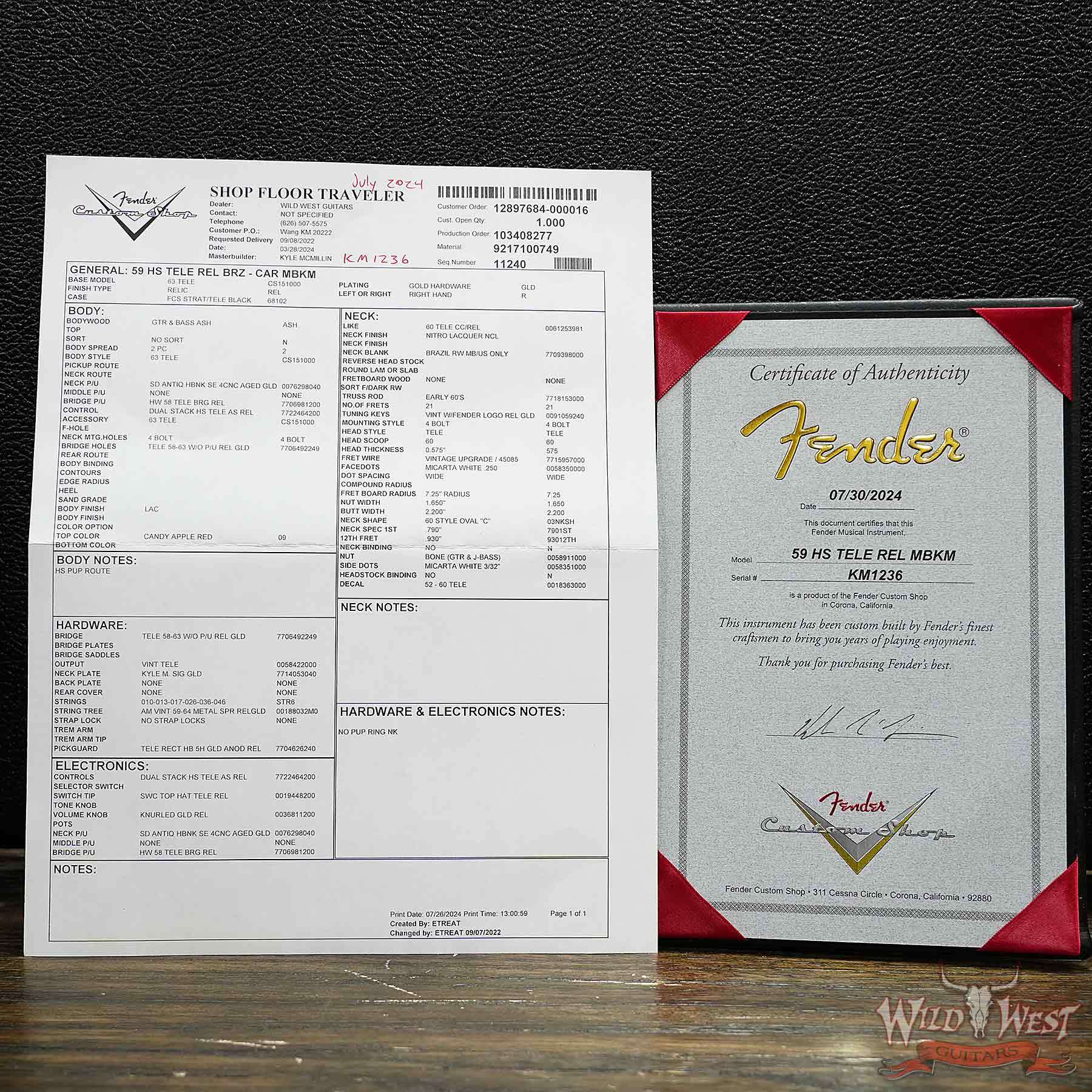 Fender Custom Shop Kyle McMillin Masterbuilt 1959 HS Telecaster Brazilian Rosewood Neck Relic Candy Apple Red 7.80 LBS (US Only / No International Shipping)