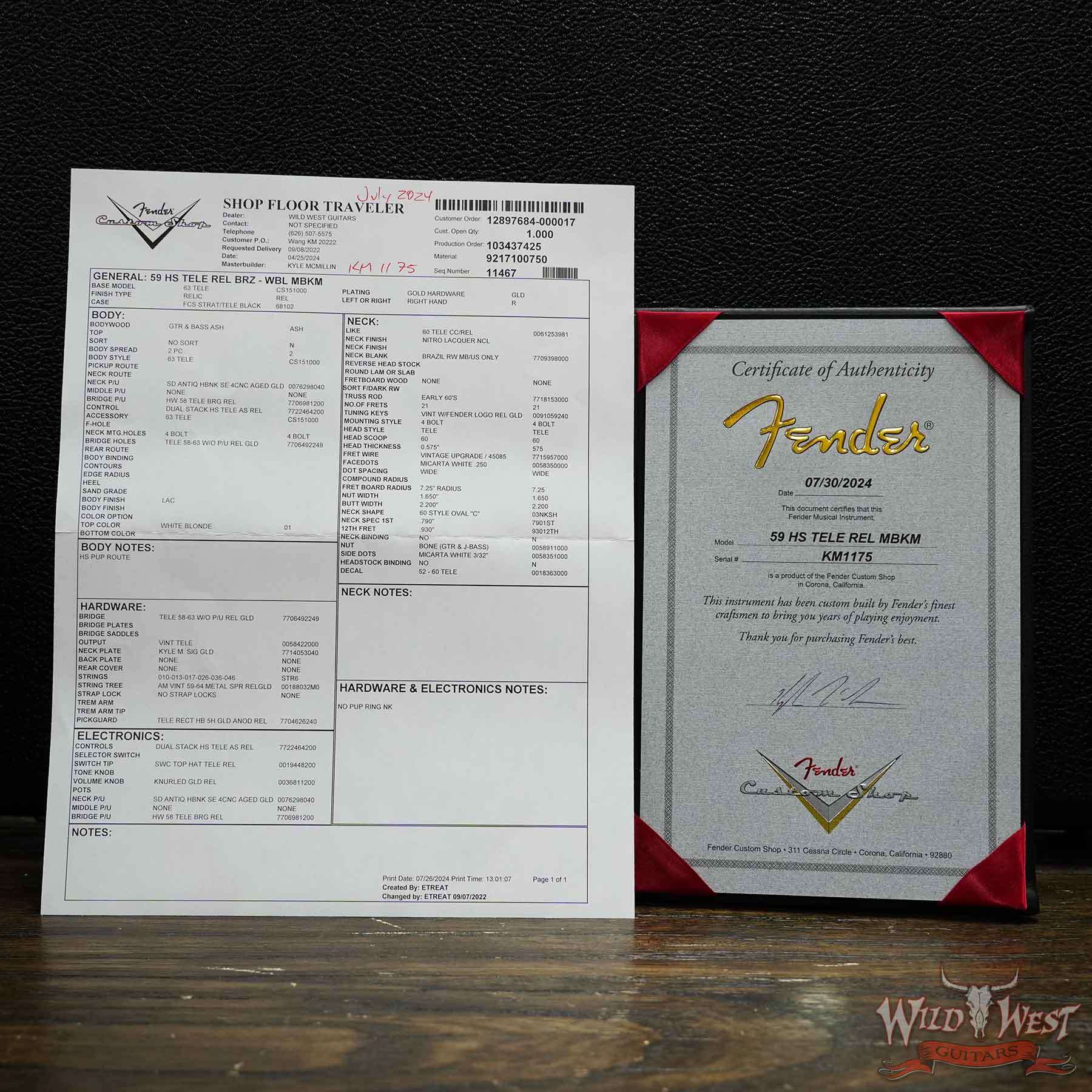 Fender Custom Shop Kyle McMillin Masterbuilt 1959 HS Telecaster Brazilian Rosewood Neck Relic White Blonde 7.15 LBS (US Only / No International Shipping)