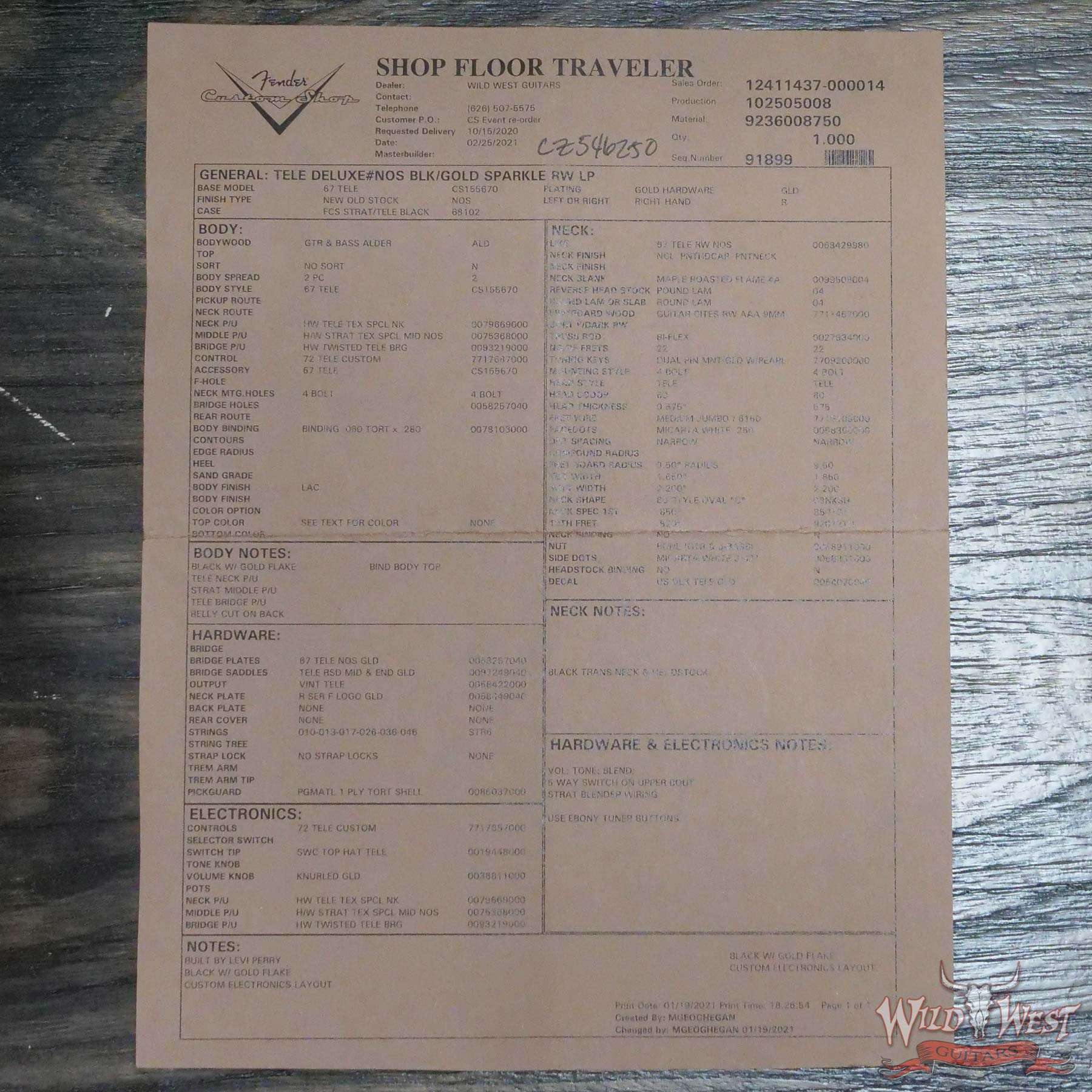Fender Custom Shop Levi Perry Apprentice Masterbuilt Telecaster Deluxe SSS NOS Black Gold Sparkle