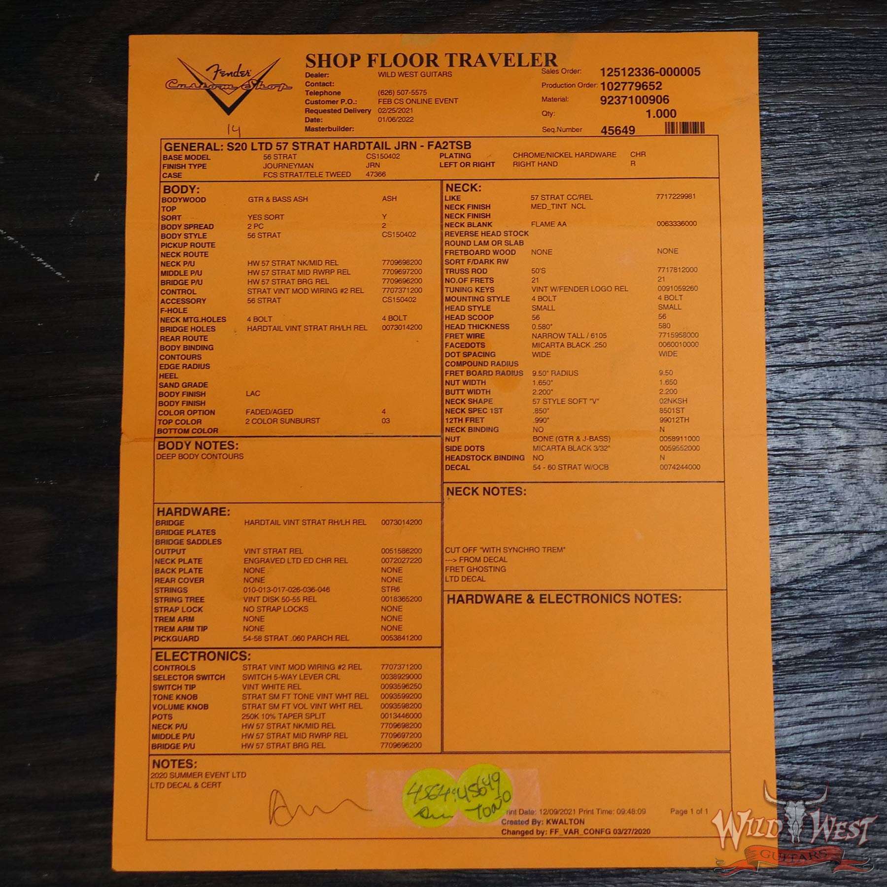 Fender Custom Shop limited Edition 1957 Stratocaster Hardtail Hand-Wound Pickups Journeyman Relic Faded Aged 2 Tone Sunburst