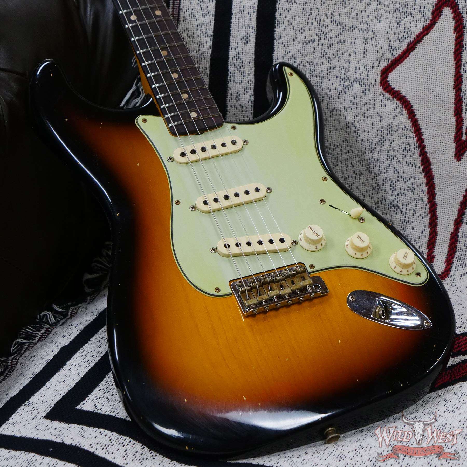 Journeyman Relic® Lacquer Finish; 2-Piece Select Alder Body; 3A Flame Maple Neck with a ‘59 Style “C” Back-Shape; Flat-Lam Rosewood Fingerboard; 9.5” Radius; 21 Jumbo (6100) Frets; Hand-Wound Ancho Poblano Strat® Pickups with RWRP Middle; Strat Blender Wiring with Master Greasebucket™ Tone; 8-Hole 3-Ply Mint Green Pickguard; American Vintage Synchronized Tremolo; Vintage-Style Tuning Machines; Bone Nut; Wing String Tree with Tall Metal Spacer; Deluxe Hardshell; Strap; Certificate of Authenticity.