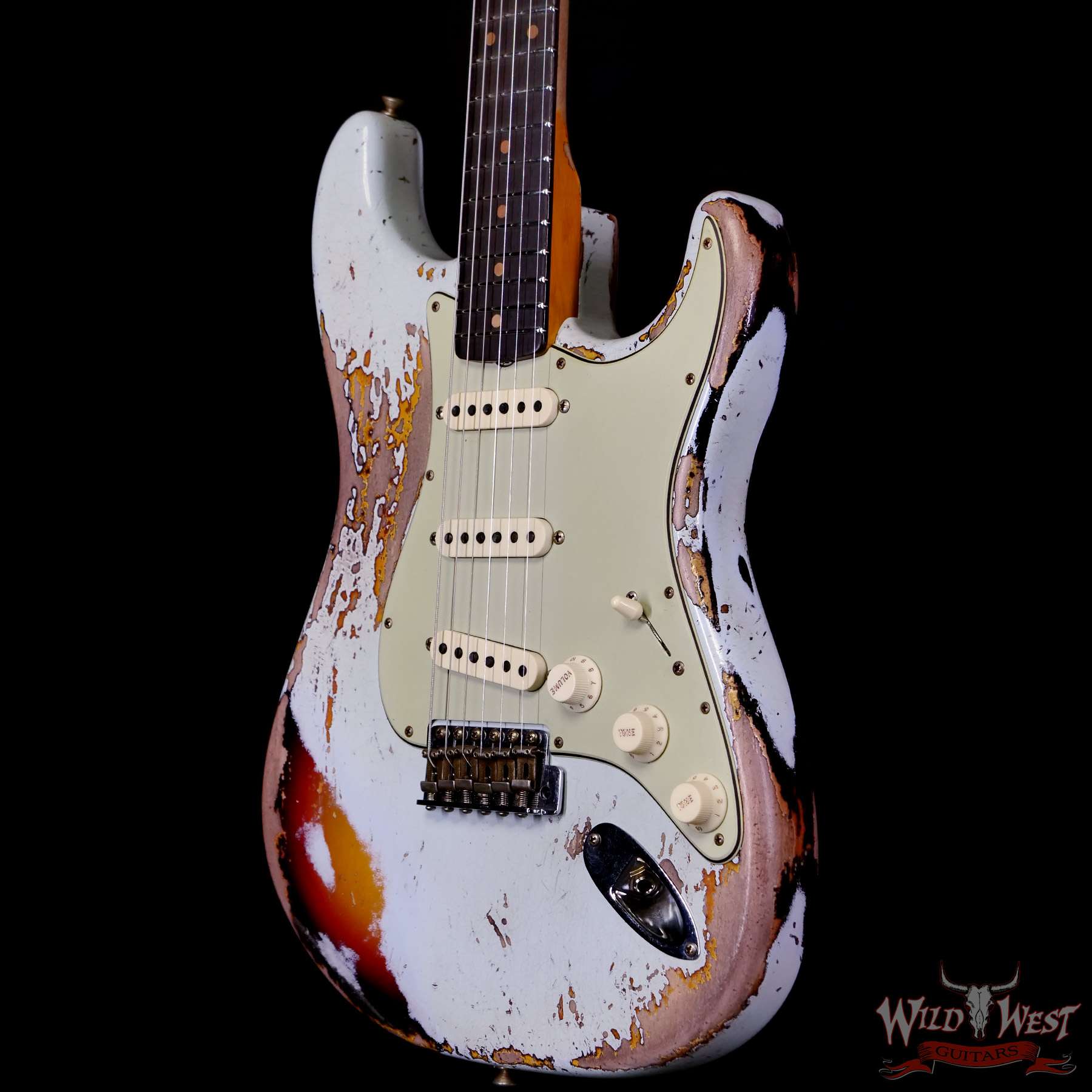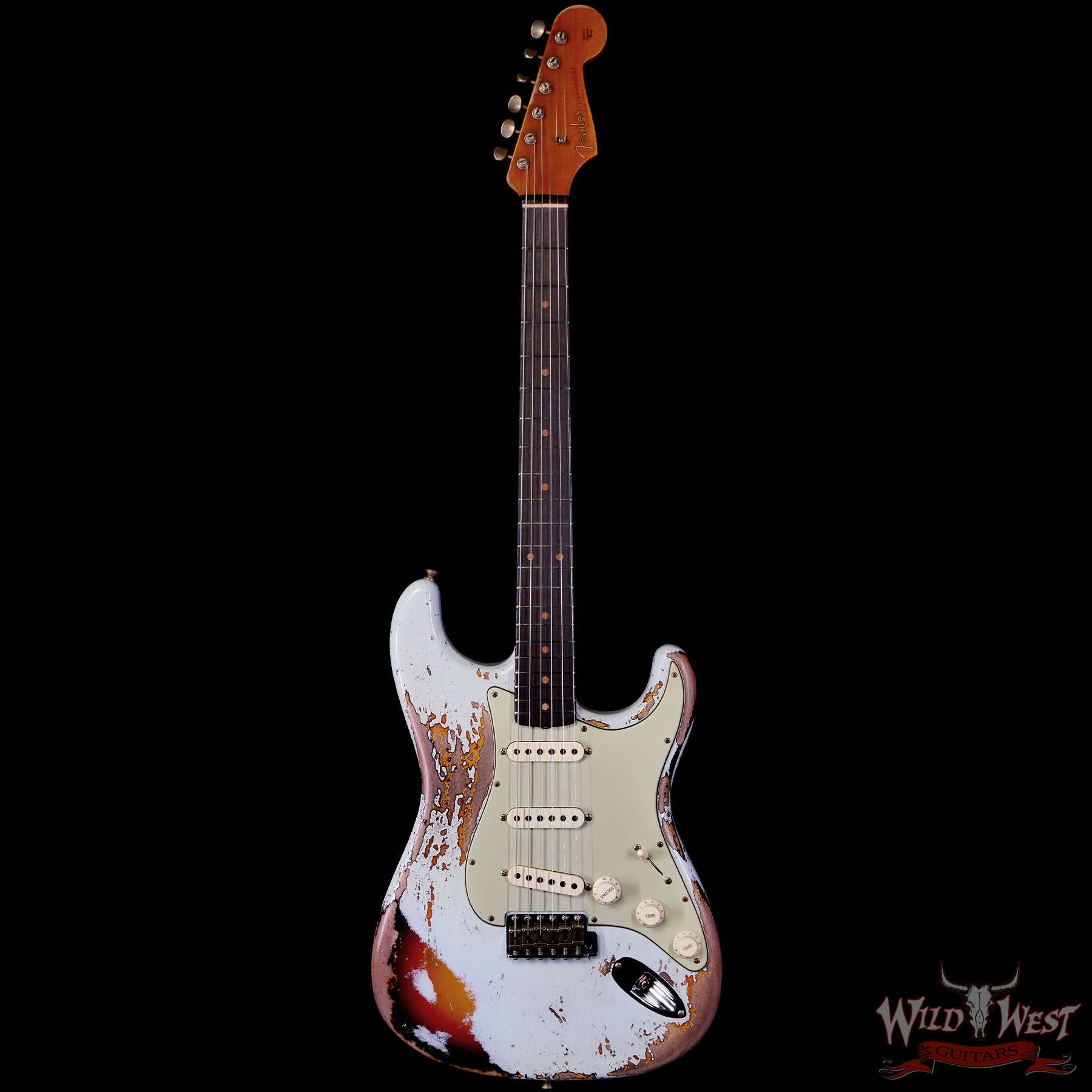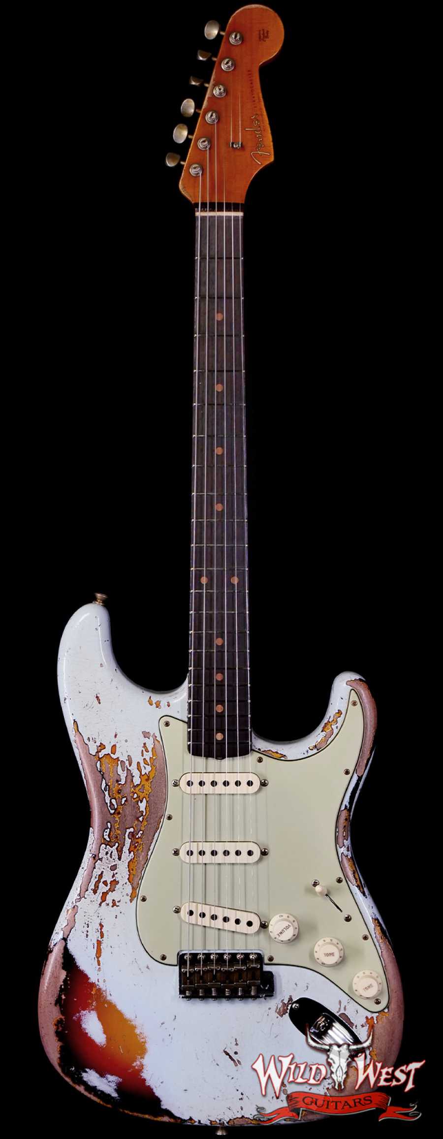 Super Heavy Relic® Lacquer Finish; 2-Piece Select Alder Body; Quartersawn Maple Neck with Large “C” Back-Shape; Flat-Lam Rosewood Fingerboard; 9.5” Radius; 21 Jumbo (6100) Frets; Hand-Wound Fat ‘60s Strat® Pickups with RWRP Middle; Vintage Modified #2 Wiring with Tone-Saver Bleed; 5-Way Switch; 3-Ply Mint Green Pickguard; Custom Shop Vintage Synchronized Tremolo; Vintage-Style Tuning Machines; Bone Nut; Wing String Tree with Tall Metal Spacer; Deluxe Hardshell Case; Strap; Certificate of Authenticity.