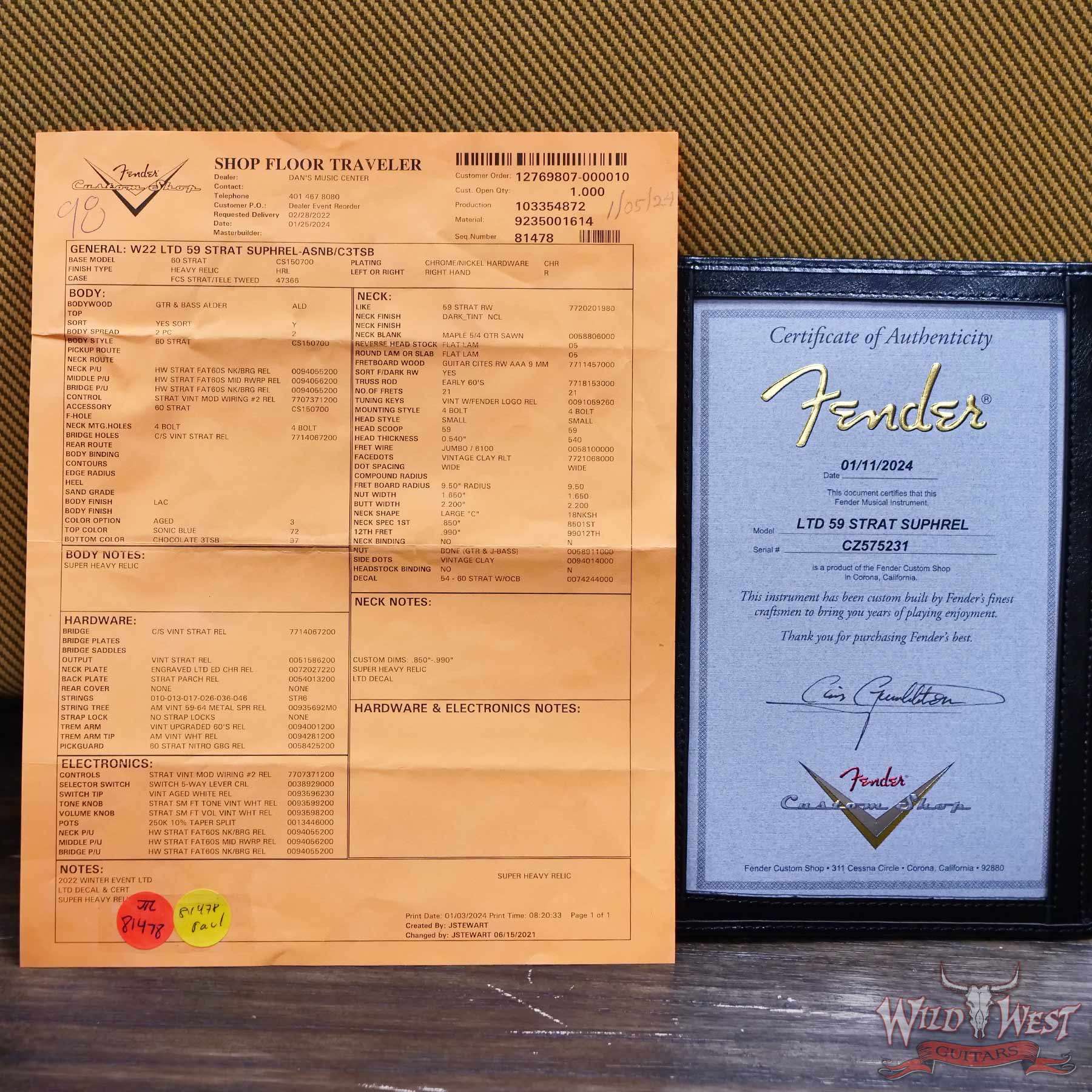 Fender Custom Shop Limited Edition 1959 Stratocaster Super Heavy Relic Sonic Blue over 3 Tone Sunburst 7.90 LBS