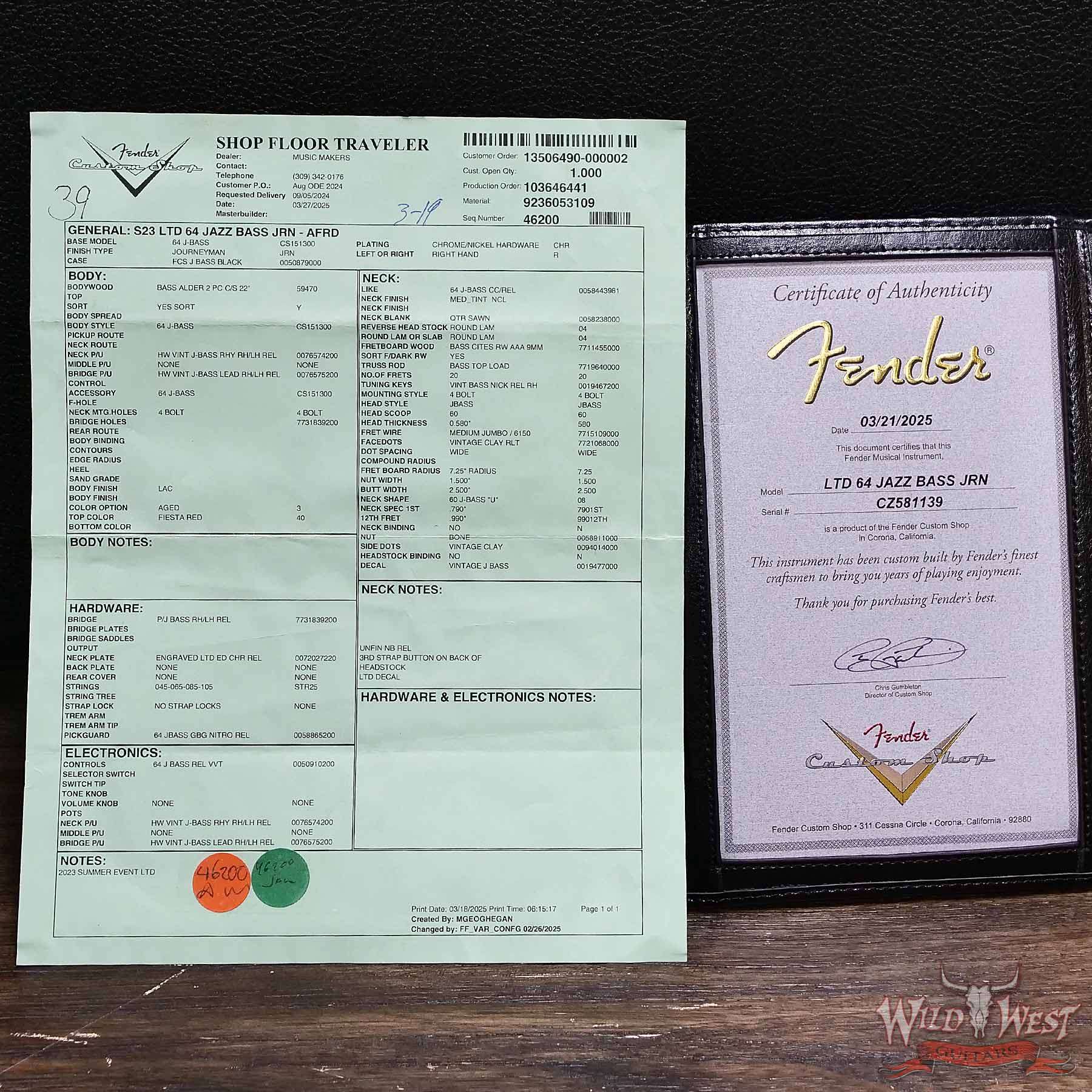 Fender Custom Shop Limited Edition 1964 Jazz Bass Journeyman Relic Aged Fiesta Red 9.15 lbs