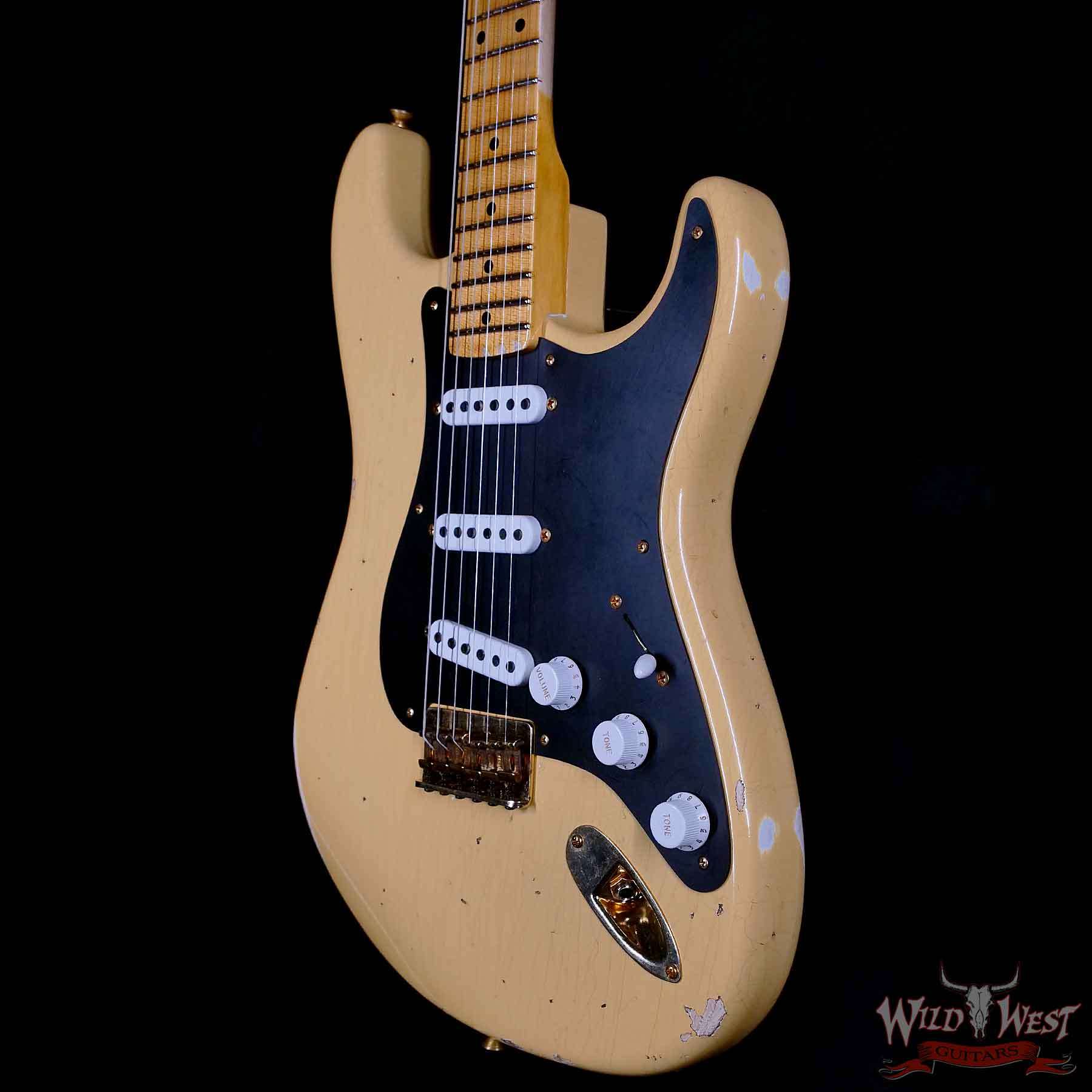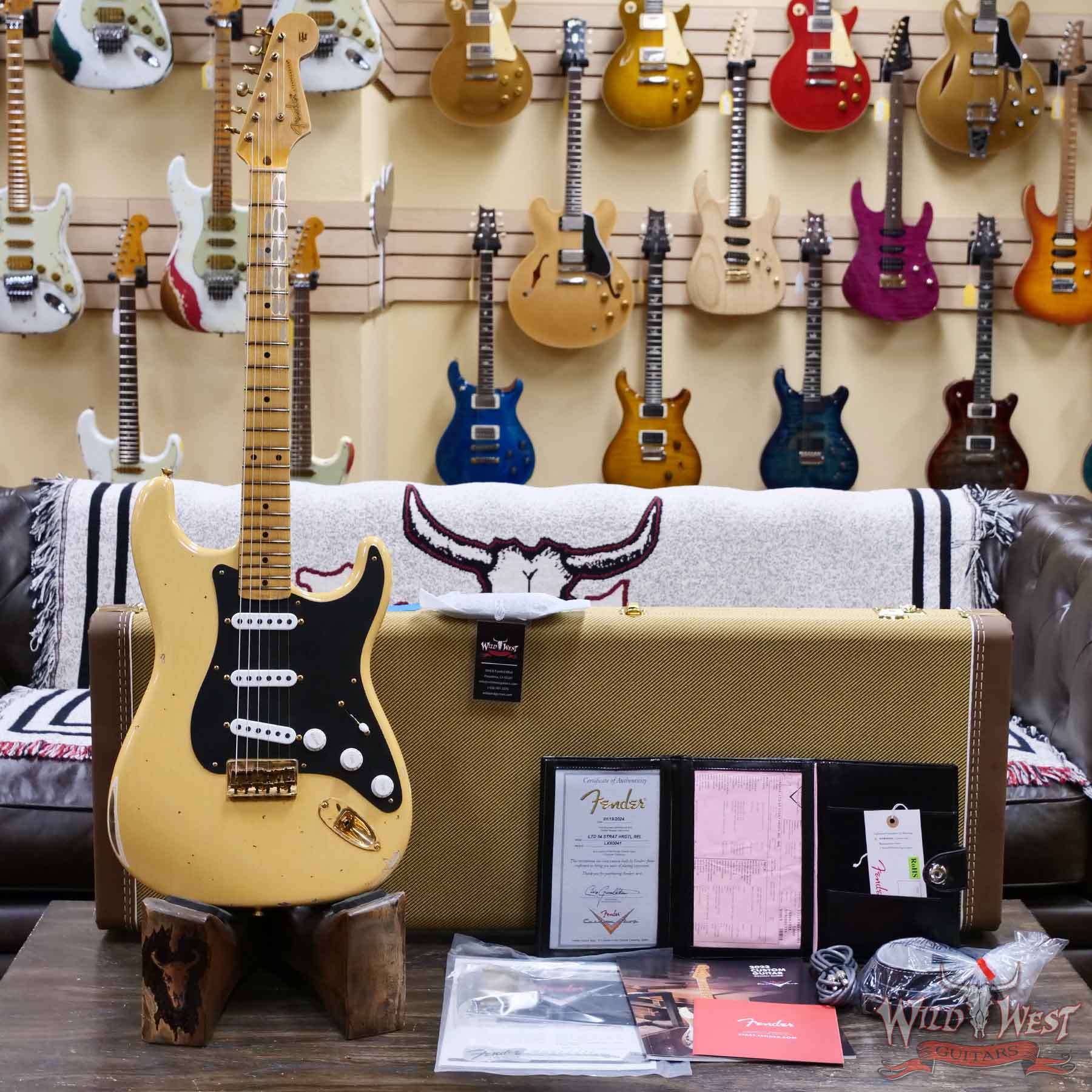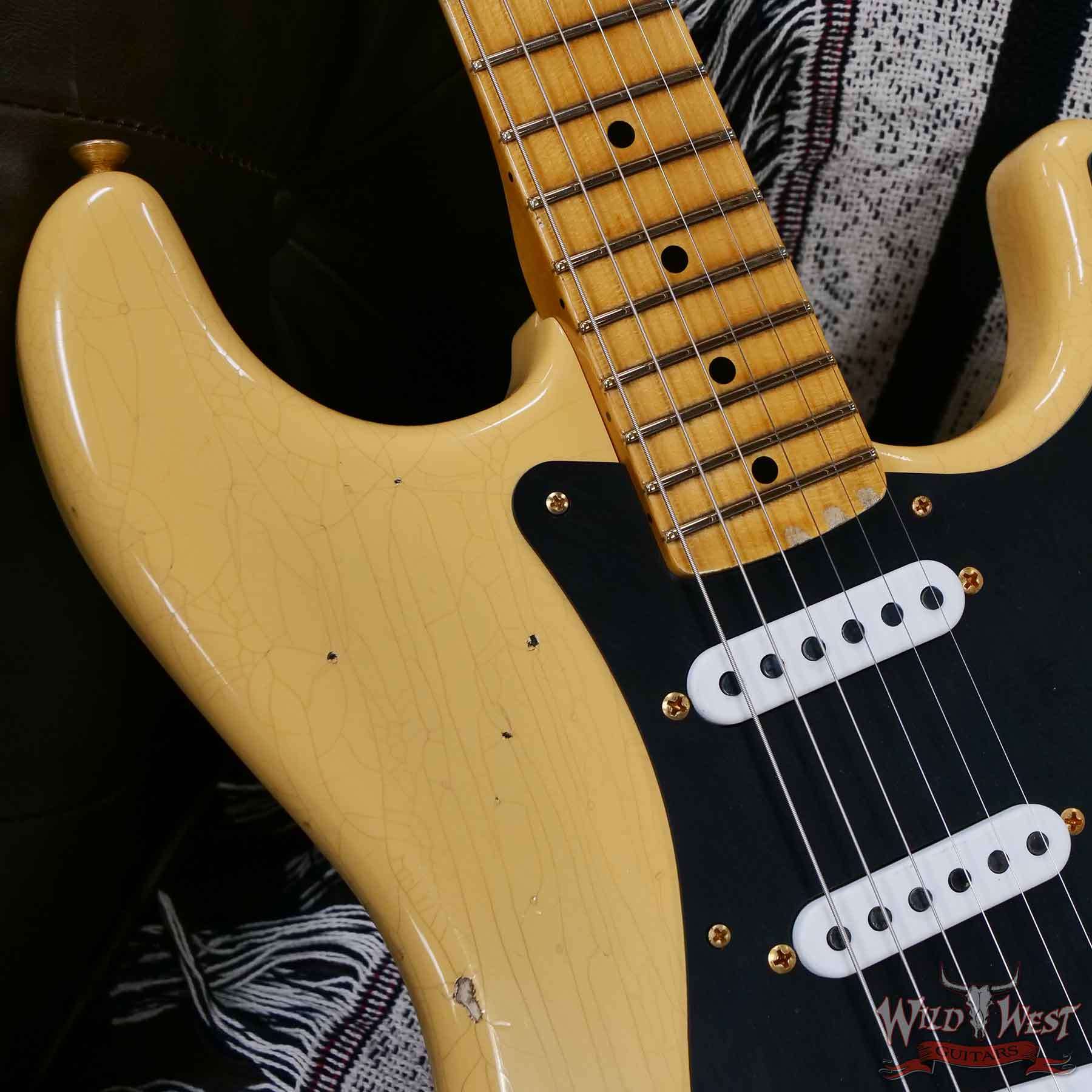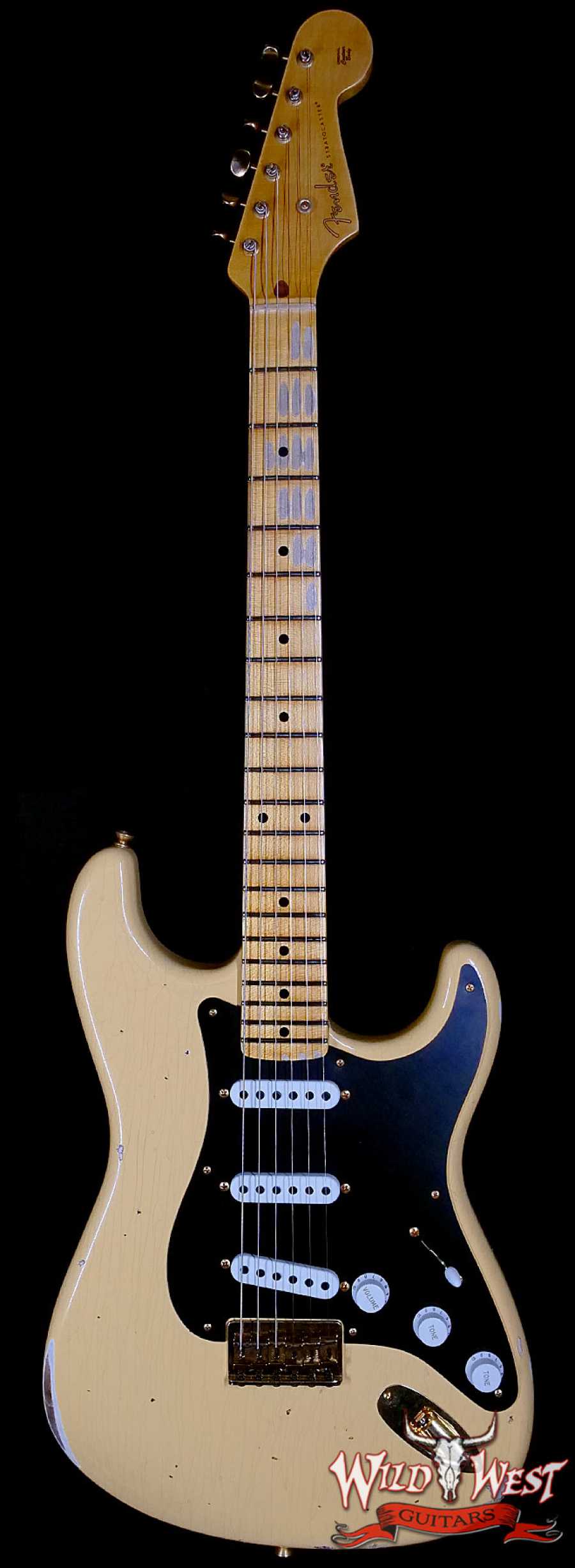 Fender Custom Shop Limited Edition 70th Anniversary 1954 Stratocaster Hardtail Relic Nocaster Blonde with Black Pickguard & Gold Hardware 6.50 LBS