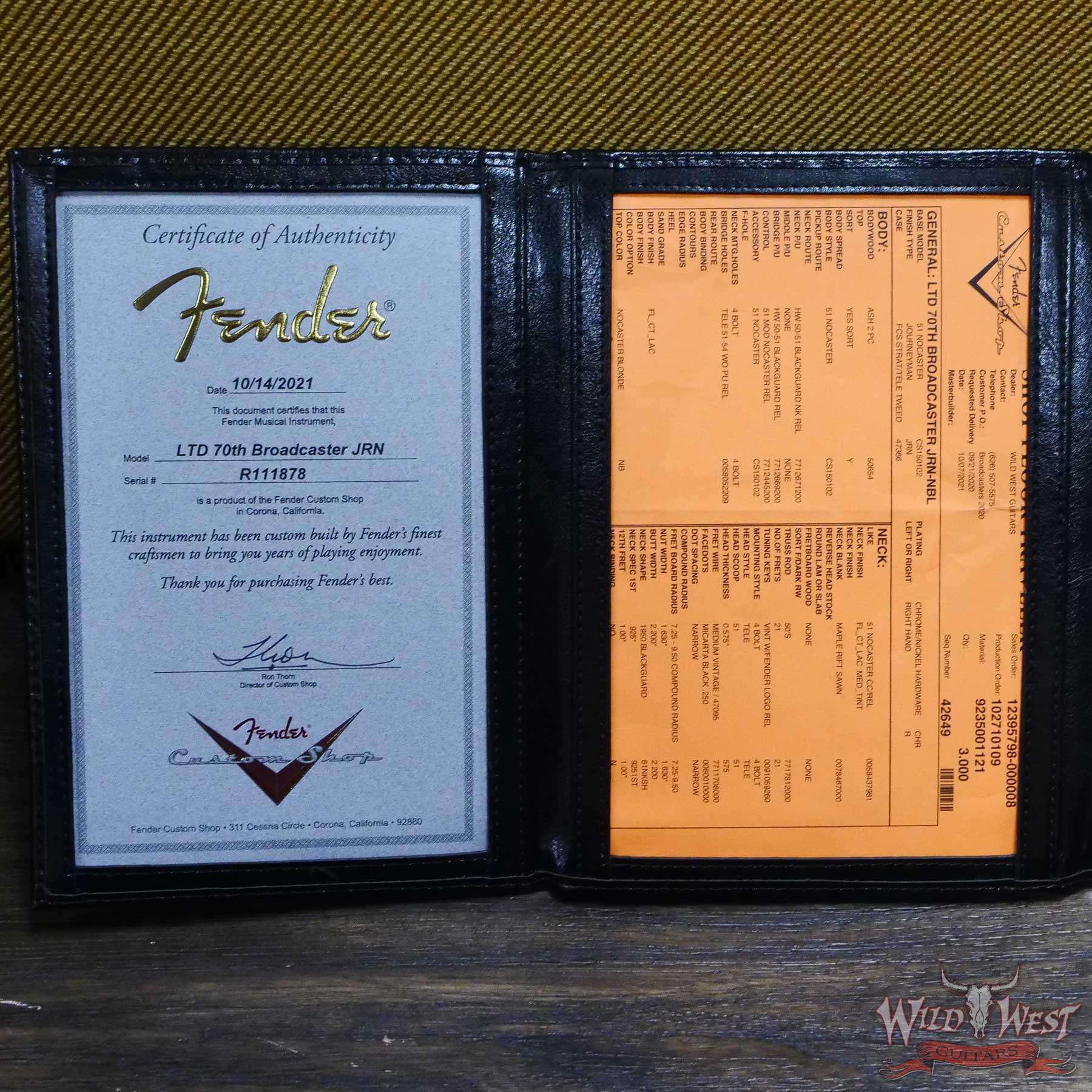Now, for 2020 alone, the Custom Shop has resurrected this famously rare guitar in honor of its 70th anniversary. The Limited Edition 70th Anniversary Broadcaster has a two-piece select ash body with off-center seam, available in four different Custom Shop aging packages—NOS Time Capsule, Journeyman Relic®, Relic and Heavy Relic—all finished in the original “flash coat” lacquer. The one-piece rift-sawn maple neck has a 1950 Broadcaster profile, 7.25”-9.5” vintage compound-radius fingerboard and 21 medium vintage frets. Other features include hand-wound ’50-’51 Blackguard pickups with ’51 modded “Nocaster” wiring (similar to the original, with blender pot and slightly brighter rhythm setting in the neck position). The guitar comes with a “case candy” kit containing a 70th anniversary neck plate, Fat ’50s control assembly. Also includes deluxe hardshell case, strap and certificate of authenticity.