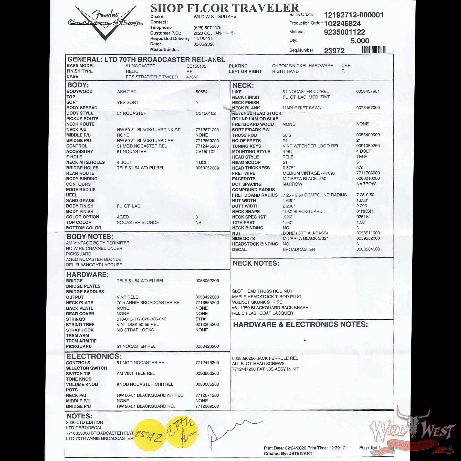 Model: Limited Edition 70th Anniversary Broadcaster Relic