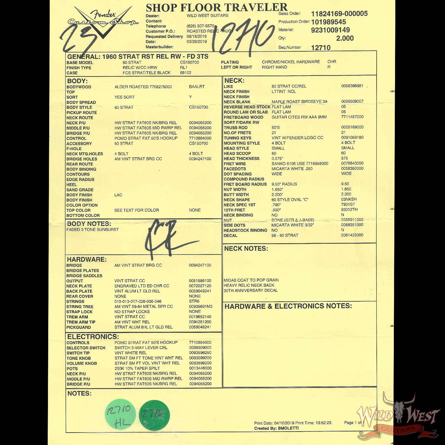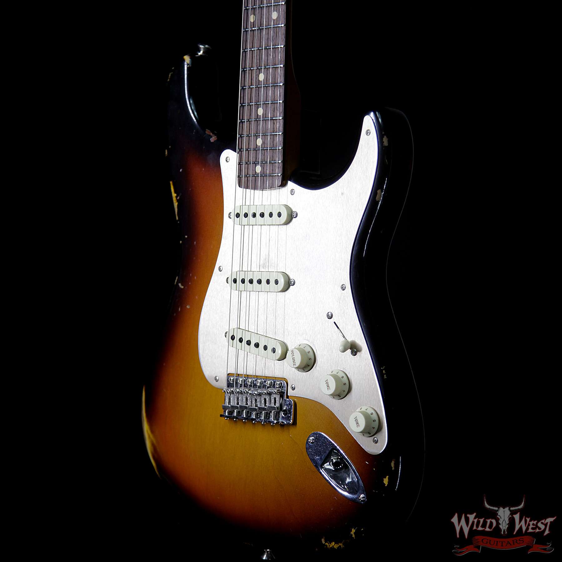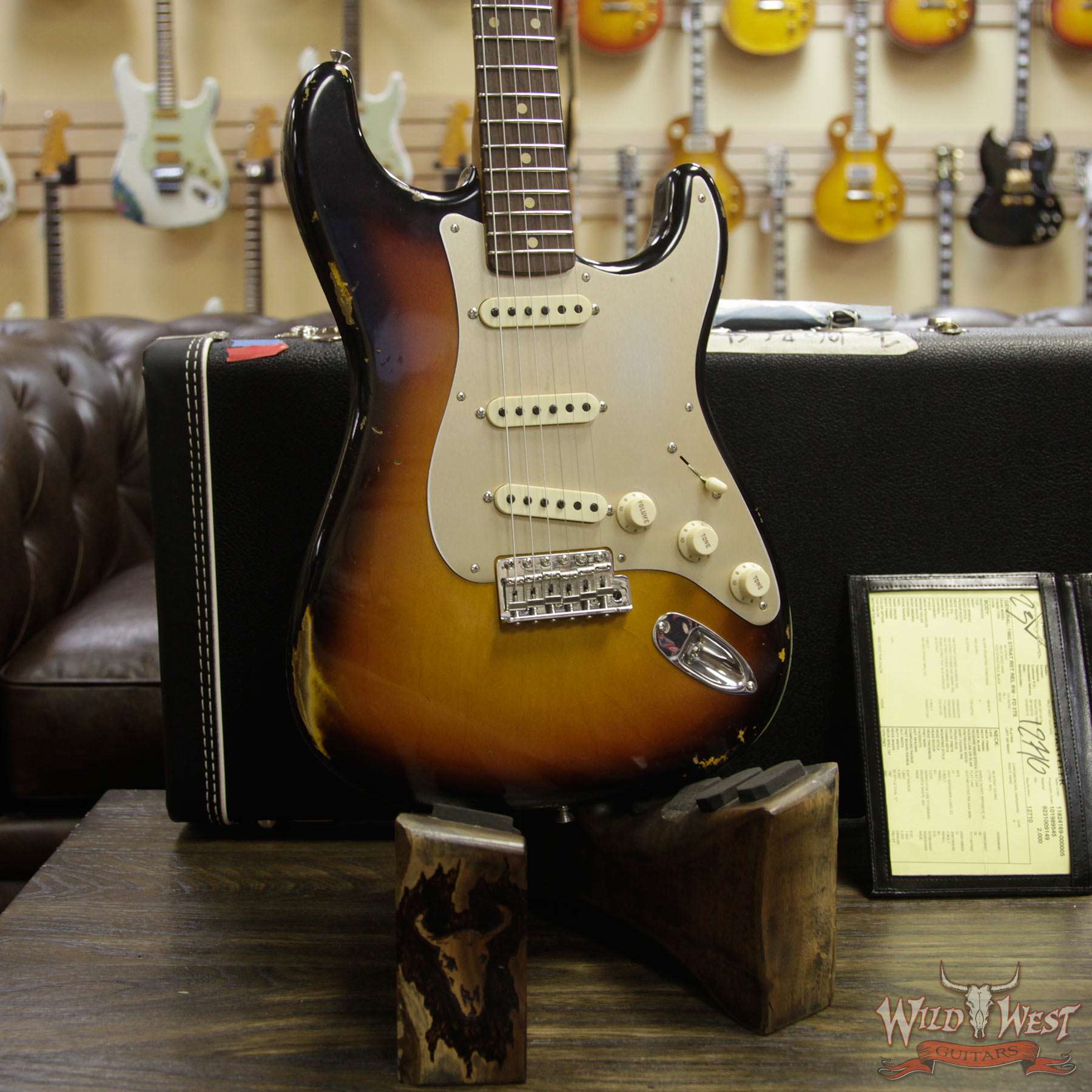 Fender Custom Shop Roasted 1960 Stratocaster Relic Birdseye Neck AAA Rosewood Slab Board 3 Tone Sunburst