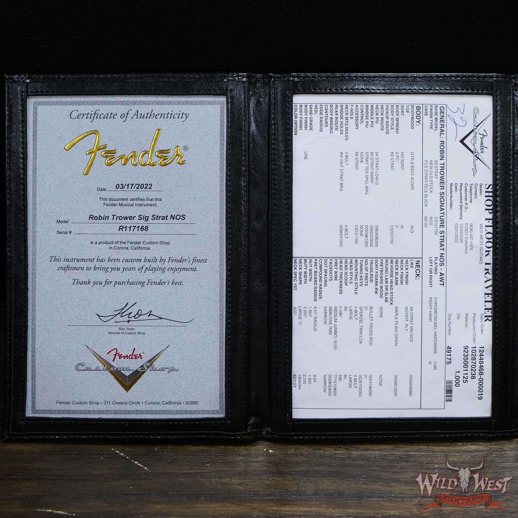 Legendary solo artist and Procol Harum guitarist Robin Trower helped define an era of guitar-riff rock with the first four notes of 1974’s “Bridge of Sighs.” Trower’s signature Stratocaster® guitar features custom pickups created by Trower and Fender master builder Todd Krause, with a reverse wound/reverse polarity middle pickup (including a humbucking option in the second and fourth positions). Other features include an alder body, custom C-shaped maple neck with abalone dot position inlays and narrow spacing, large ‘70s-style headstock with ‘70s-style decal, synchronized tremolo bridge, bullet truss rod adjustment nut and four-bolt neck plate.