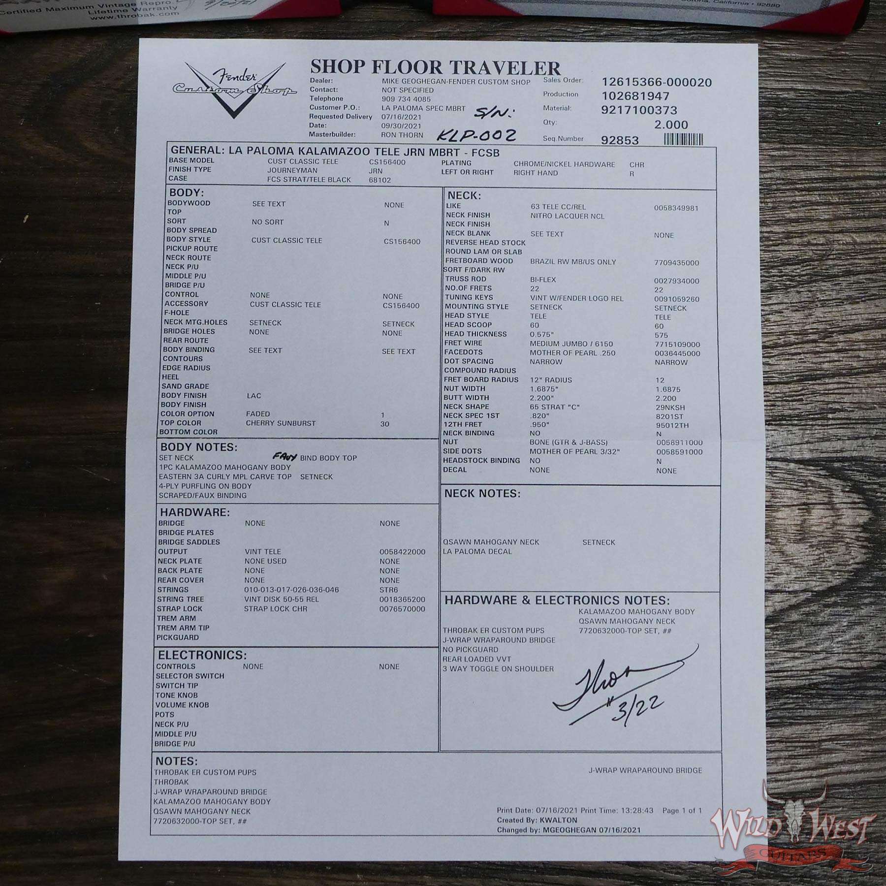 Builder | Fender Custom Shop – Ron Thorn |