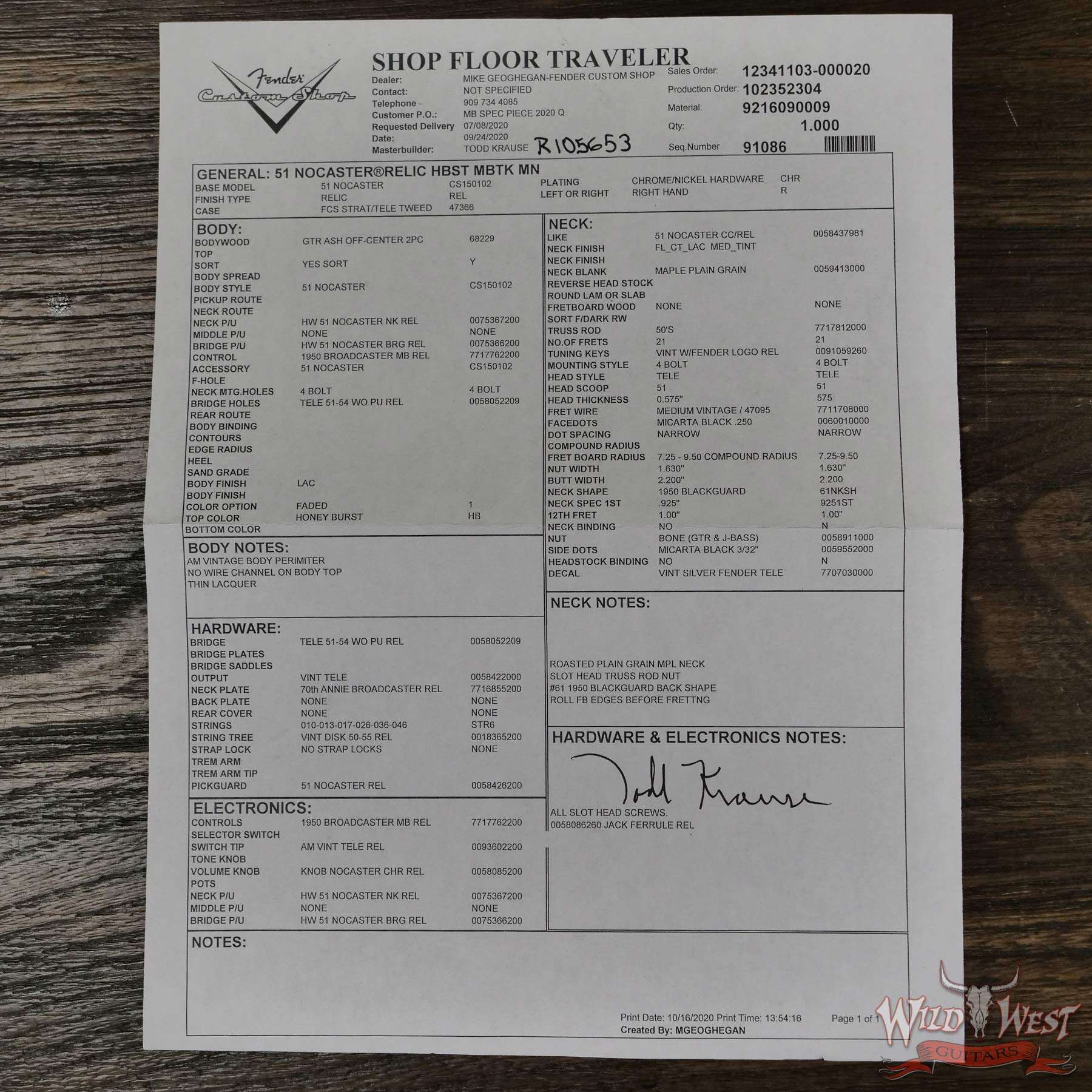 Fender Custom Shop Todd Krause Masterbuilt 51 Nocaster Relic Honey Burst Hand-Wound Pickups