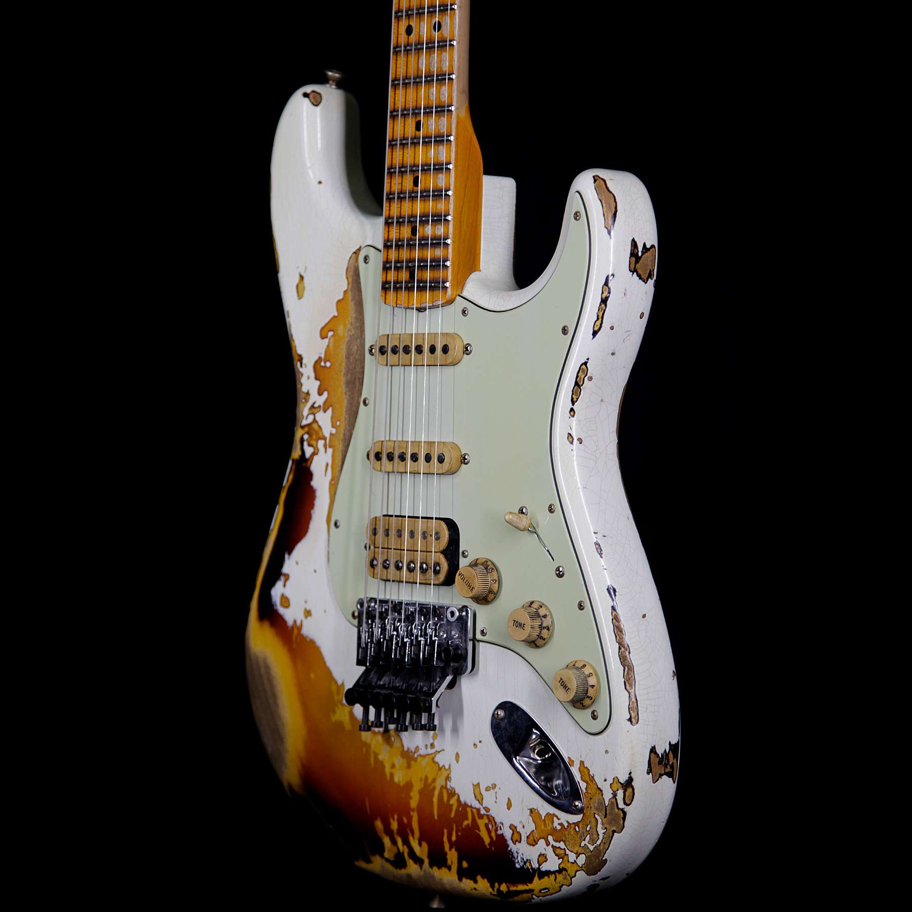 Fender Custom Shop White Lightning Floyd Rose HSS Stratocaster Heavy Relic Maple Neck 21 Frets 3 Tone Sunburst