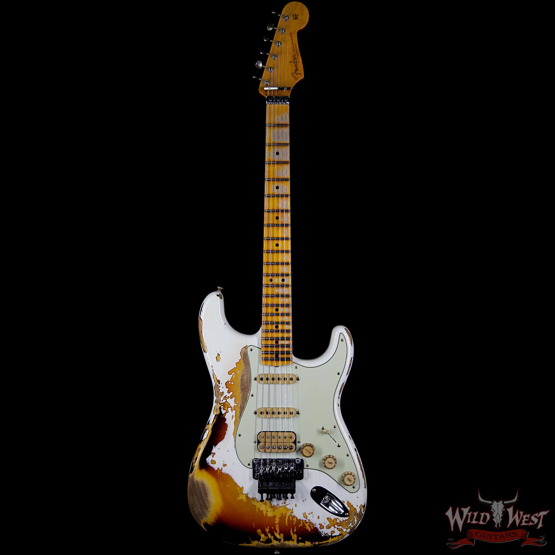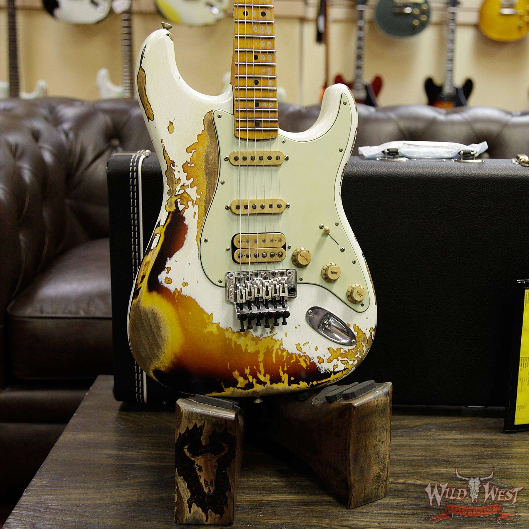 Fender Custom Shop Wild West Exclusive White Lightning Floyd Rose HSS Stratocaster Heavy Relic Maple Neck 21 Frets 3 Tone Sunburst
