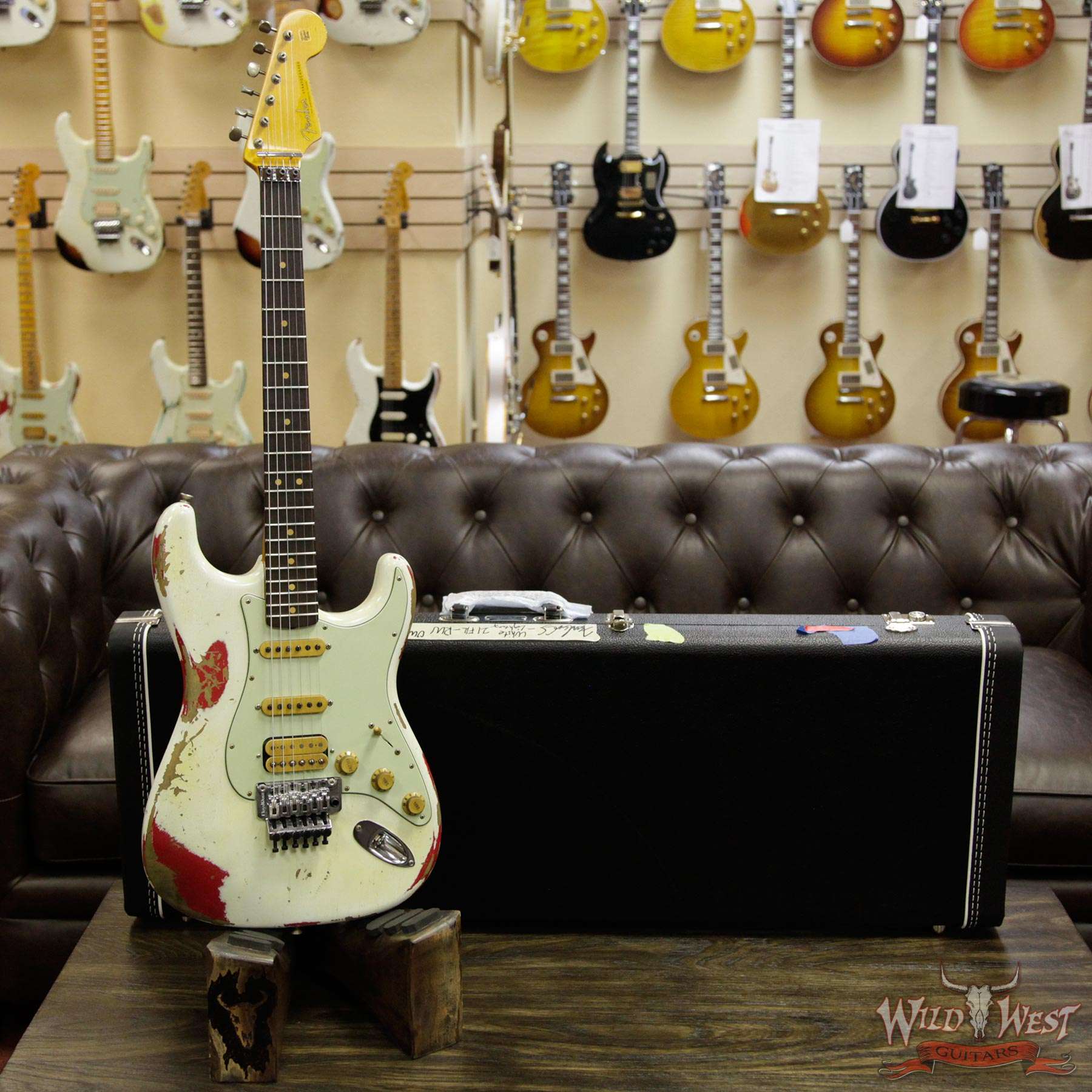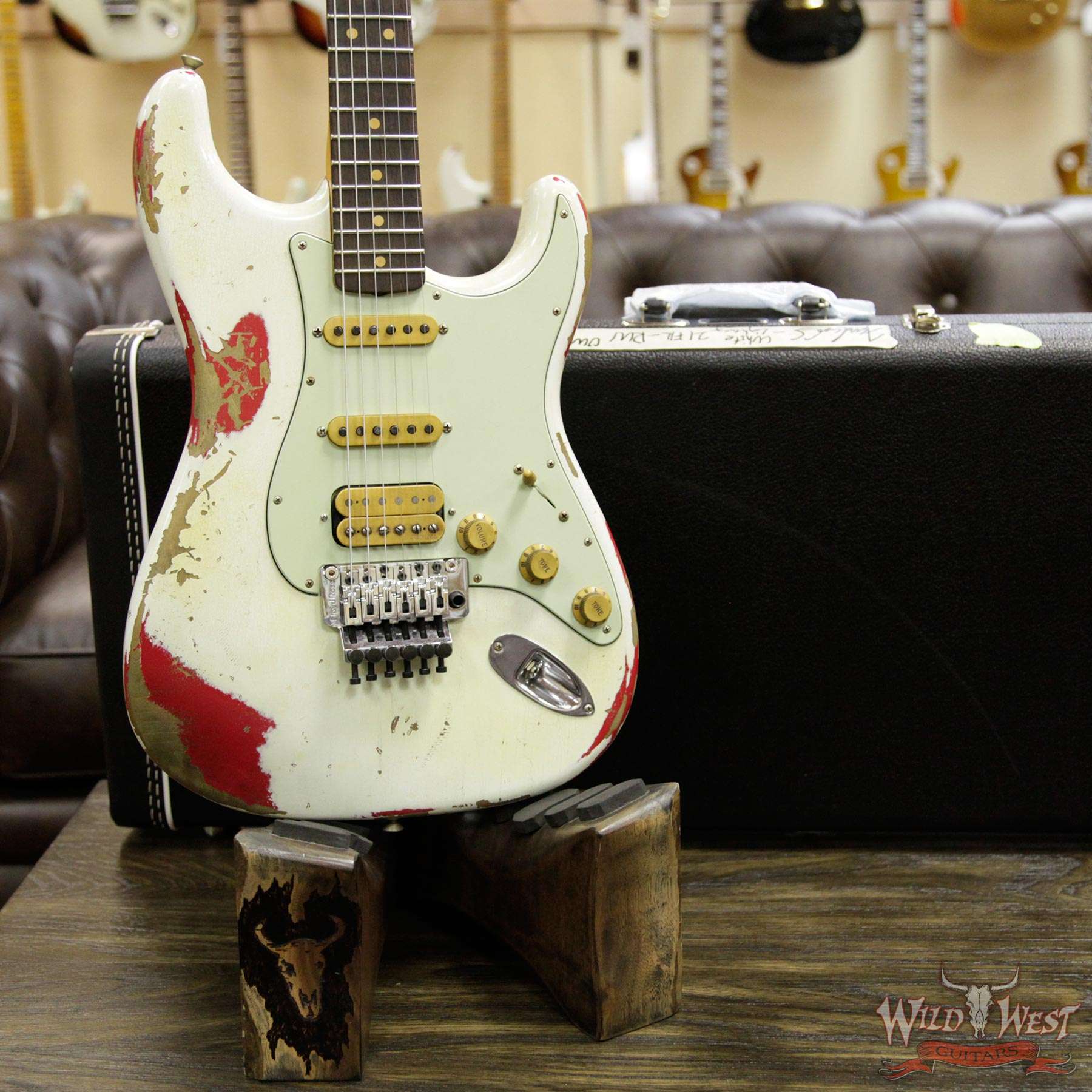 Fender Custom Shop White Lightning HSS Floyd Rose Stratocaster Heavy Relic Rosewood Board 21 Frets Olympic White over Torino Red
