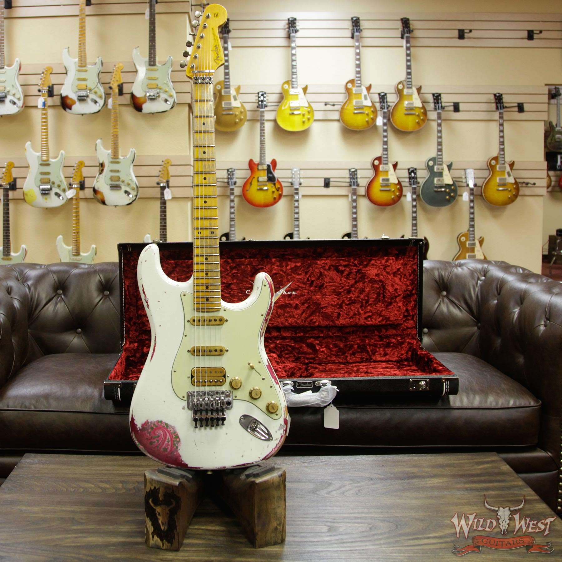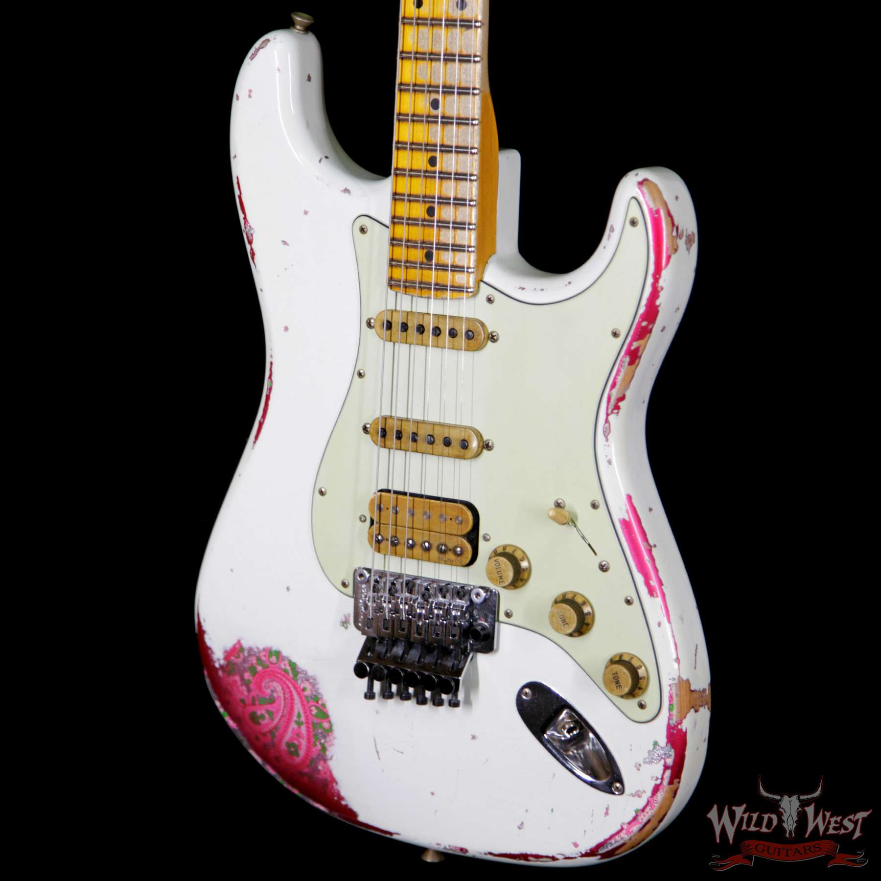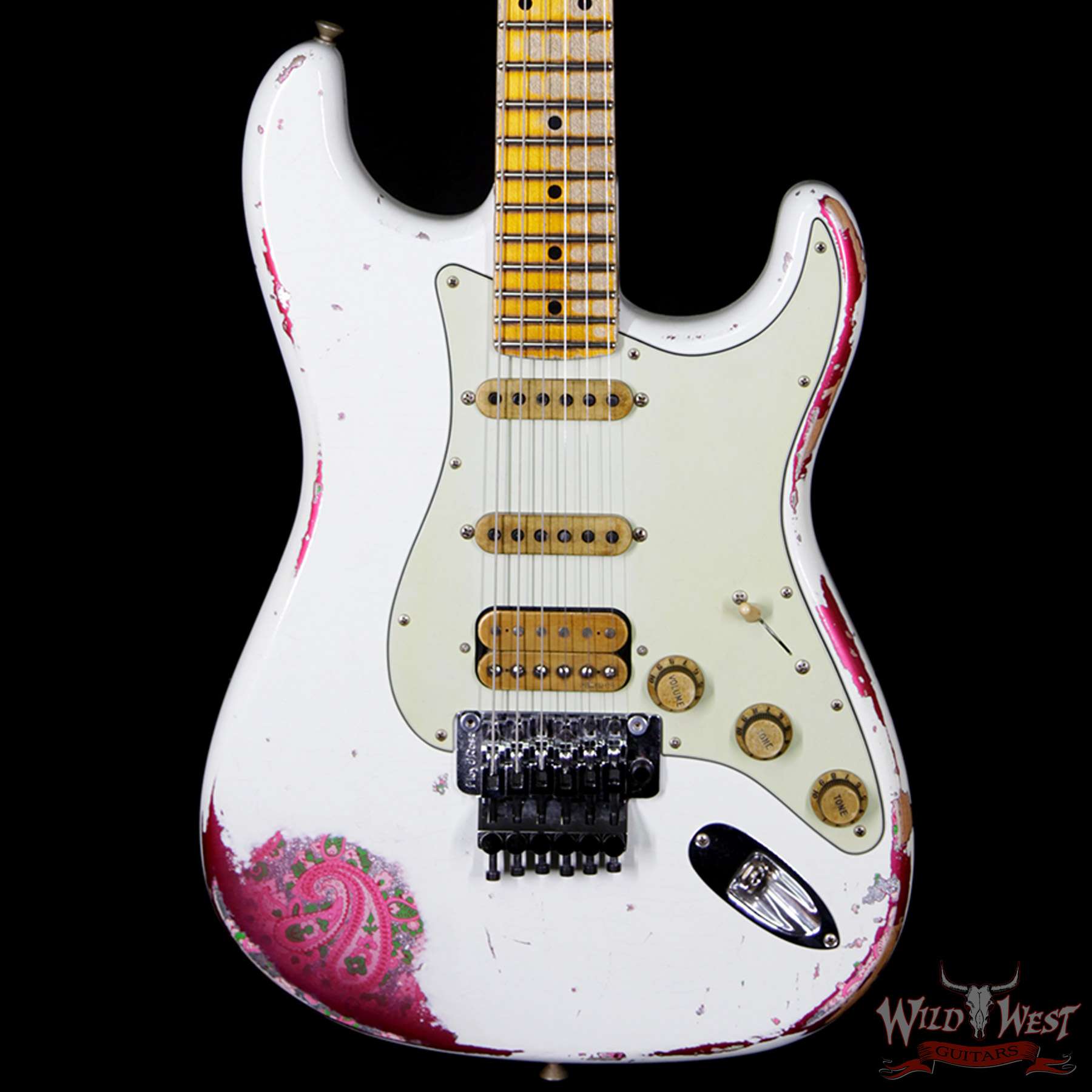 Fender Custom Shop Wild West Exclusive White Lightning Stratocaster HSS Floyd Rose Heavy Relic Maple Neck 22 Frets Pink Paisley
