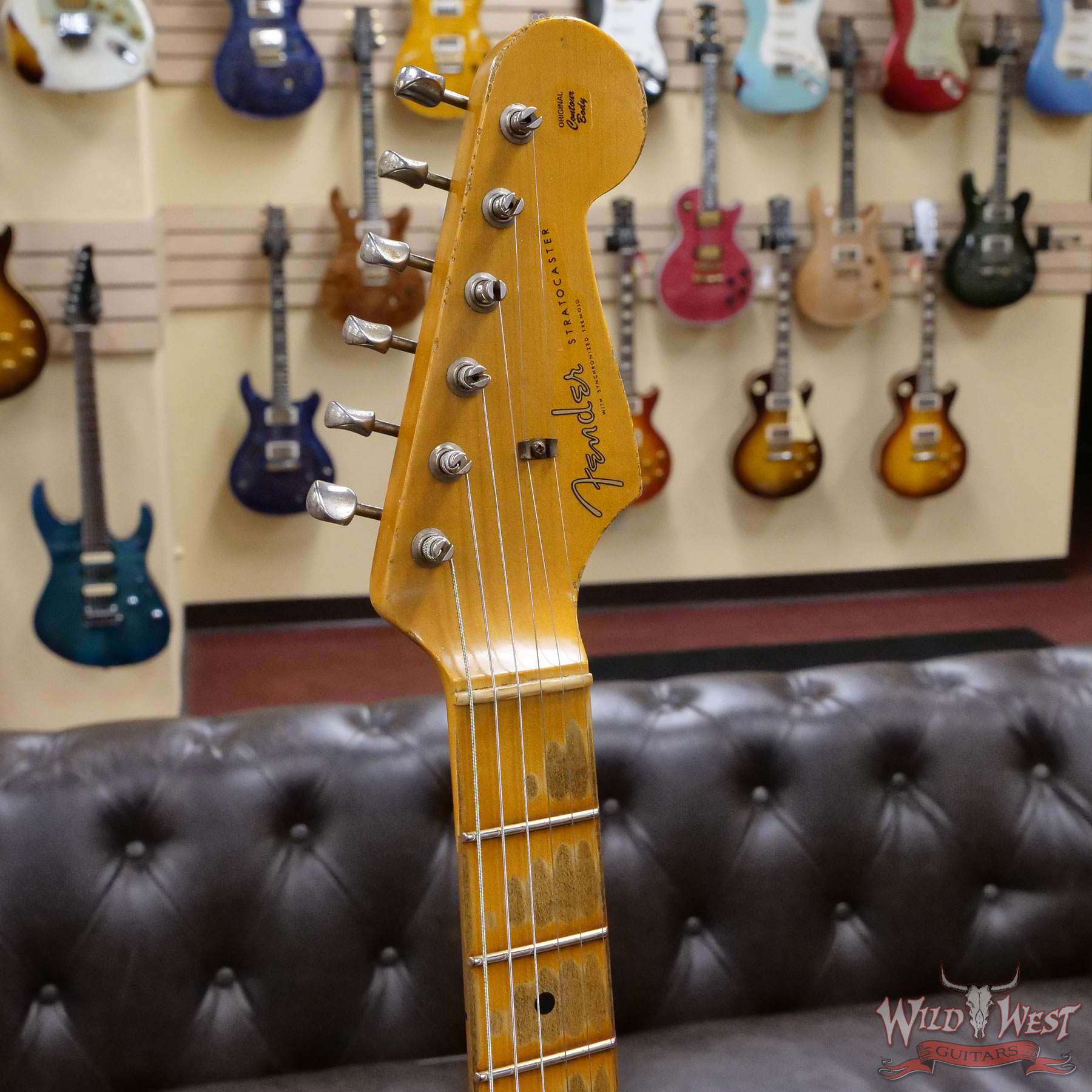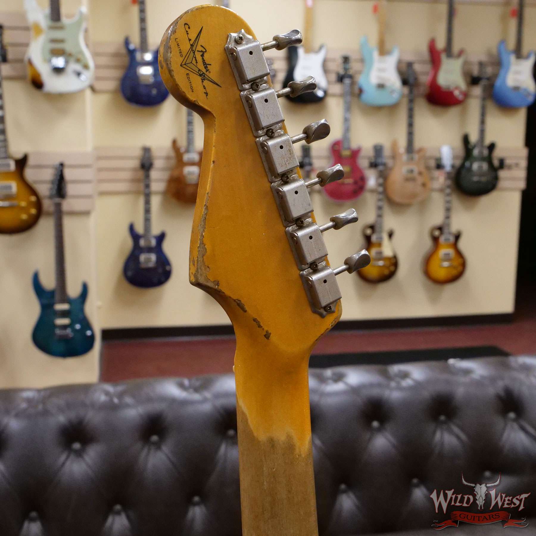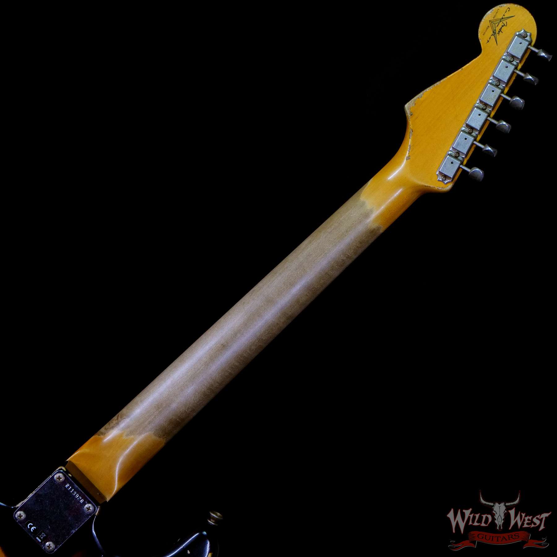 White Lightning (Black Lightning) Strikes The Dusty Plains of The Wild West! White Lightning rips all day n’ rocks all night with traditional Fender tremolo system firepower. The molten Wild West Fender Custom Shop Exclusive Heavy Relic Dirty Neck monster rules the rock n’ roll wastelands, packing a pair of Fat 50s relic single coils and a killer DiMarzio Tone Zone humbucker in the bridge position.
