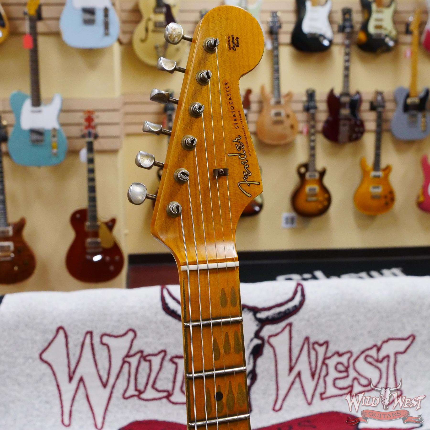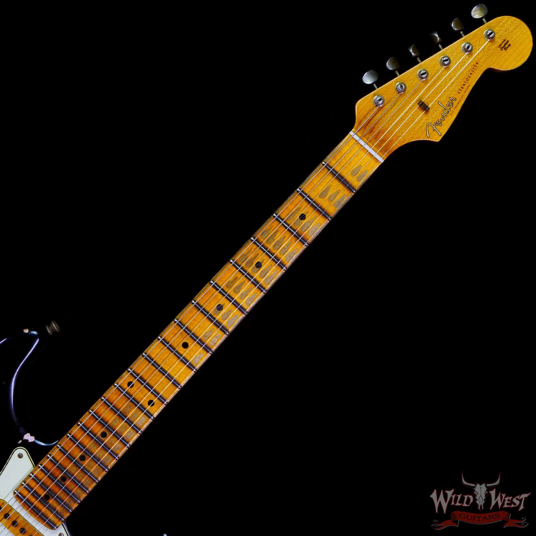 White Lightning (Black Lightning) Strikes The Dusty Plains of The Wild West! White Lightning rips all day n’ rocks all night with traditional Fender tremolo system firepower. The molten Wild West Fender Custom Shop Exclusive Heavy Relic Dirty Neck monster rules the rock n’ roll wastelands, packing a pair of Fat 50s relic single coils and a killer DiMarzio Tone Zone humbucker in the bridge position.