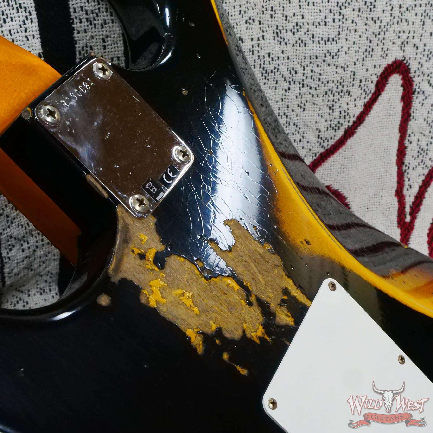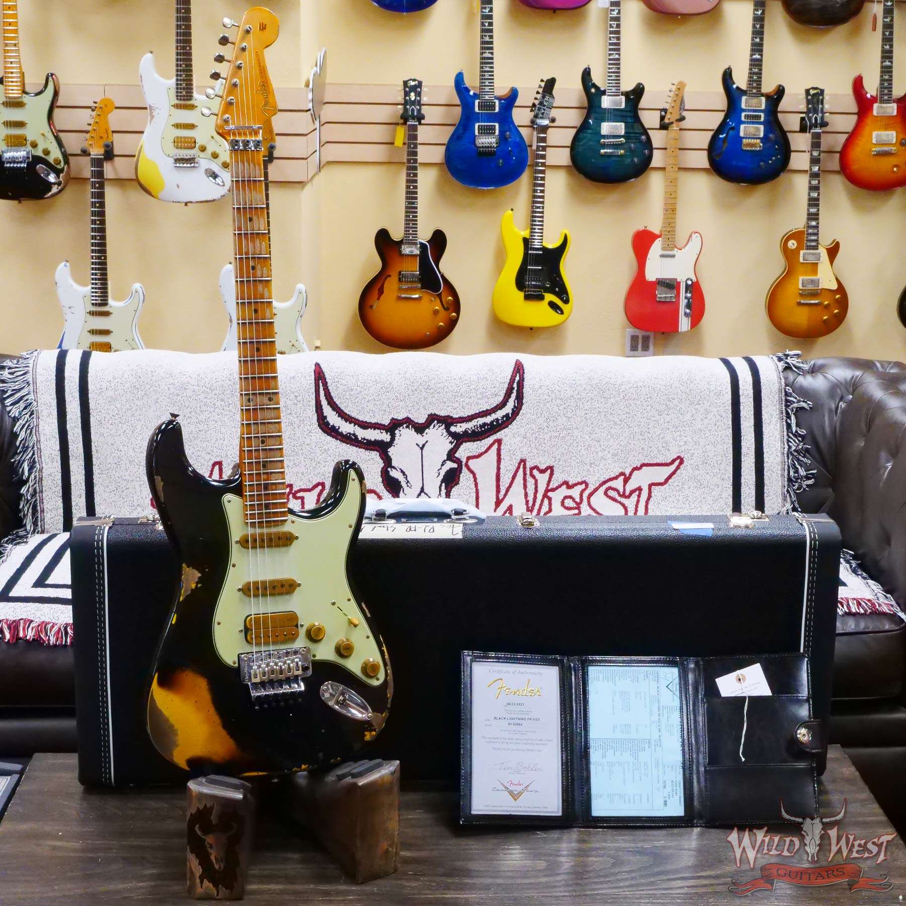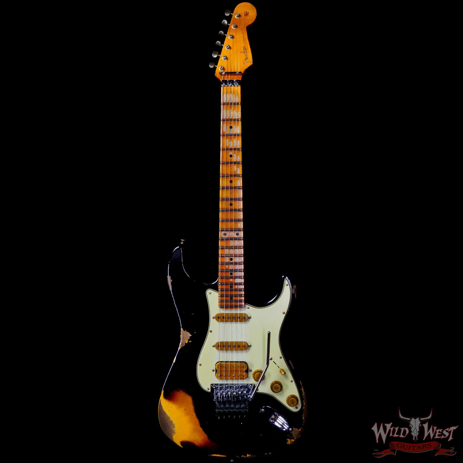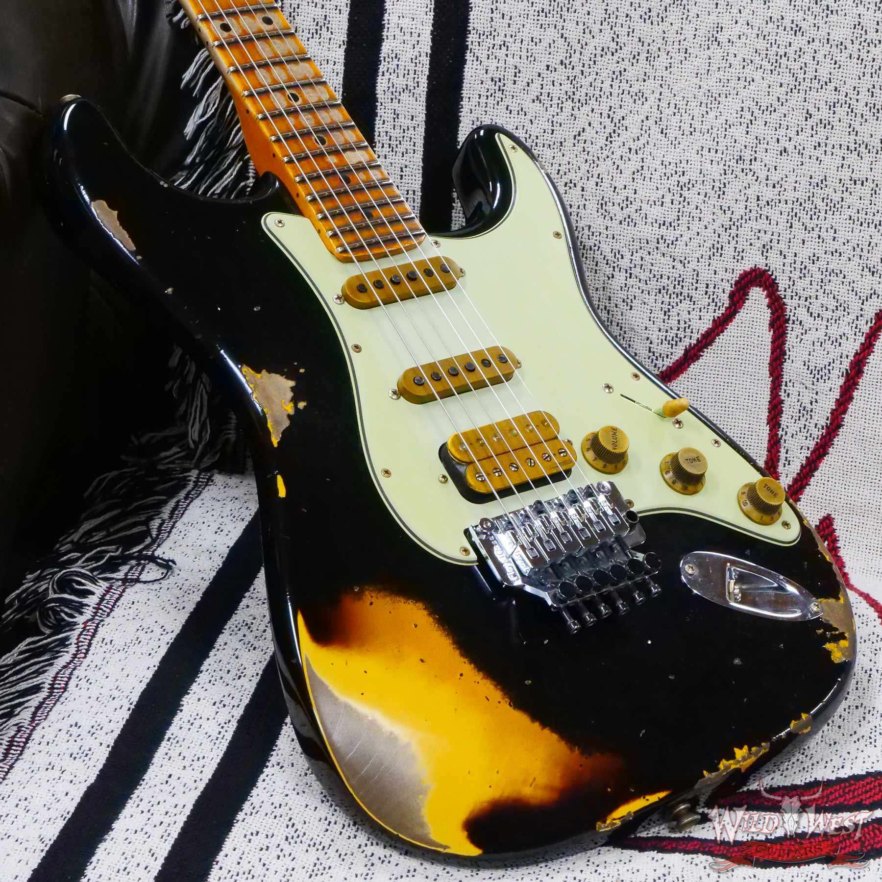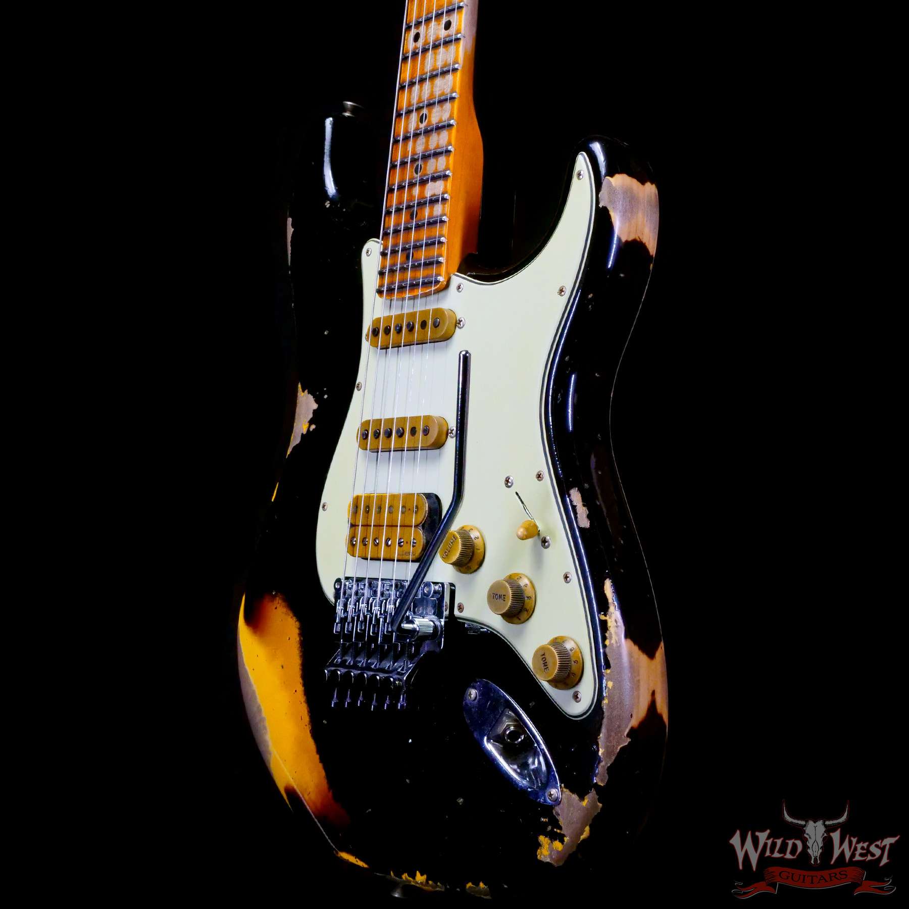 Fender Custom Shop Wild West Black Lightning Stratocaster HSS Floyd Rose Maple Board 22 Frets Heavy Relic 2 Tone Sunburst