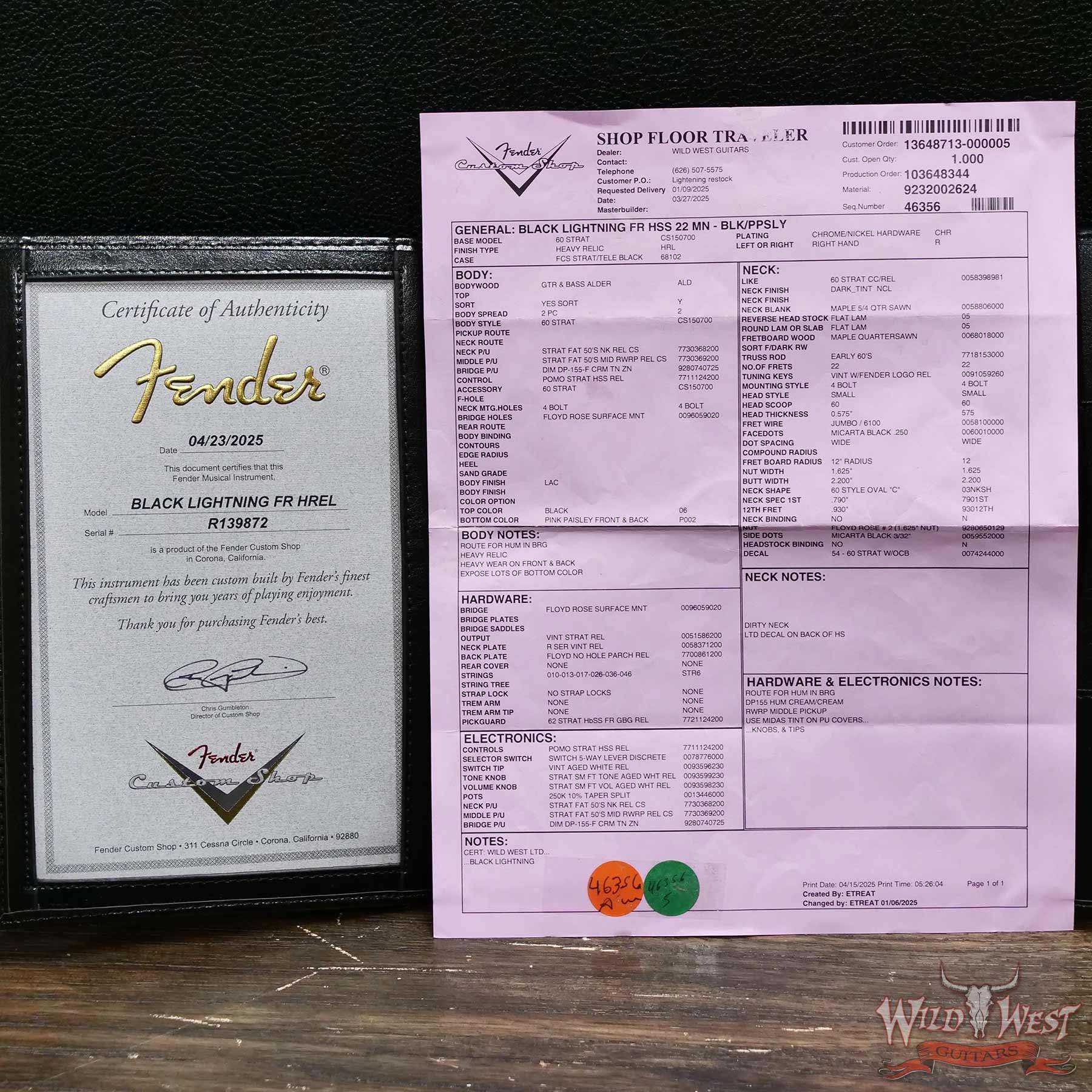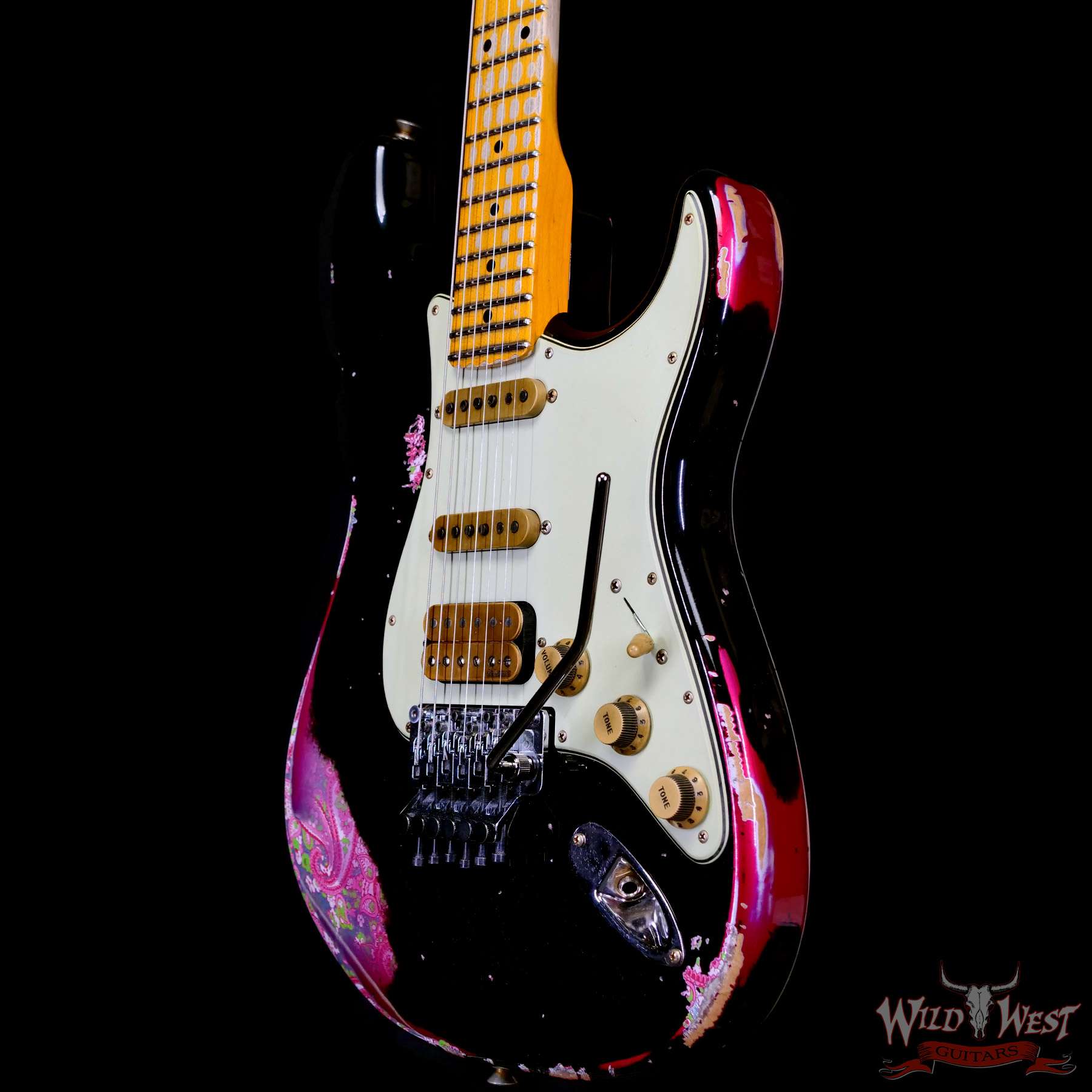 Fender Custom Shop Wild West Black Lightning Stratocaster HSS Floyd Rose Maple Fingerboard 22 Frets Heavy Relic Pink Paisley 7.85 lbs
