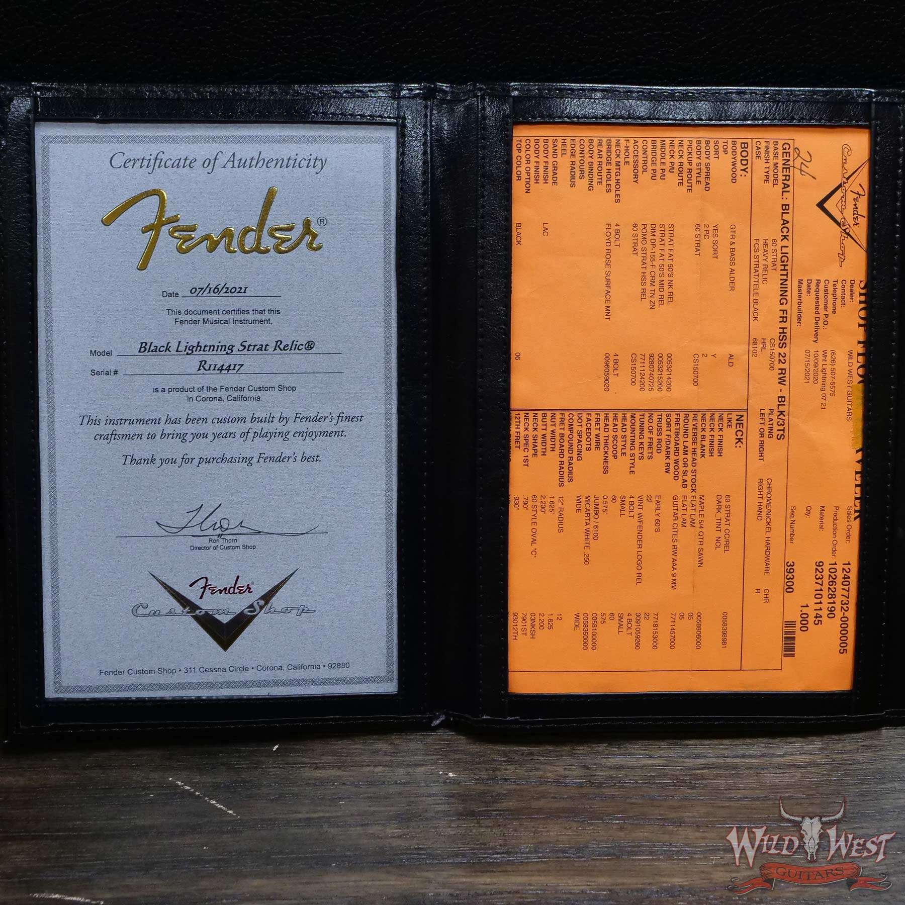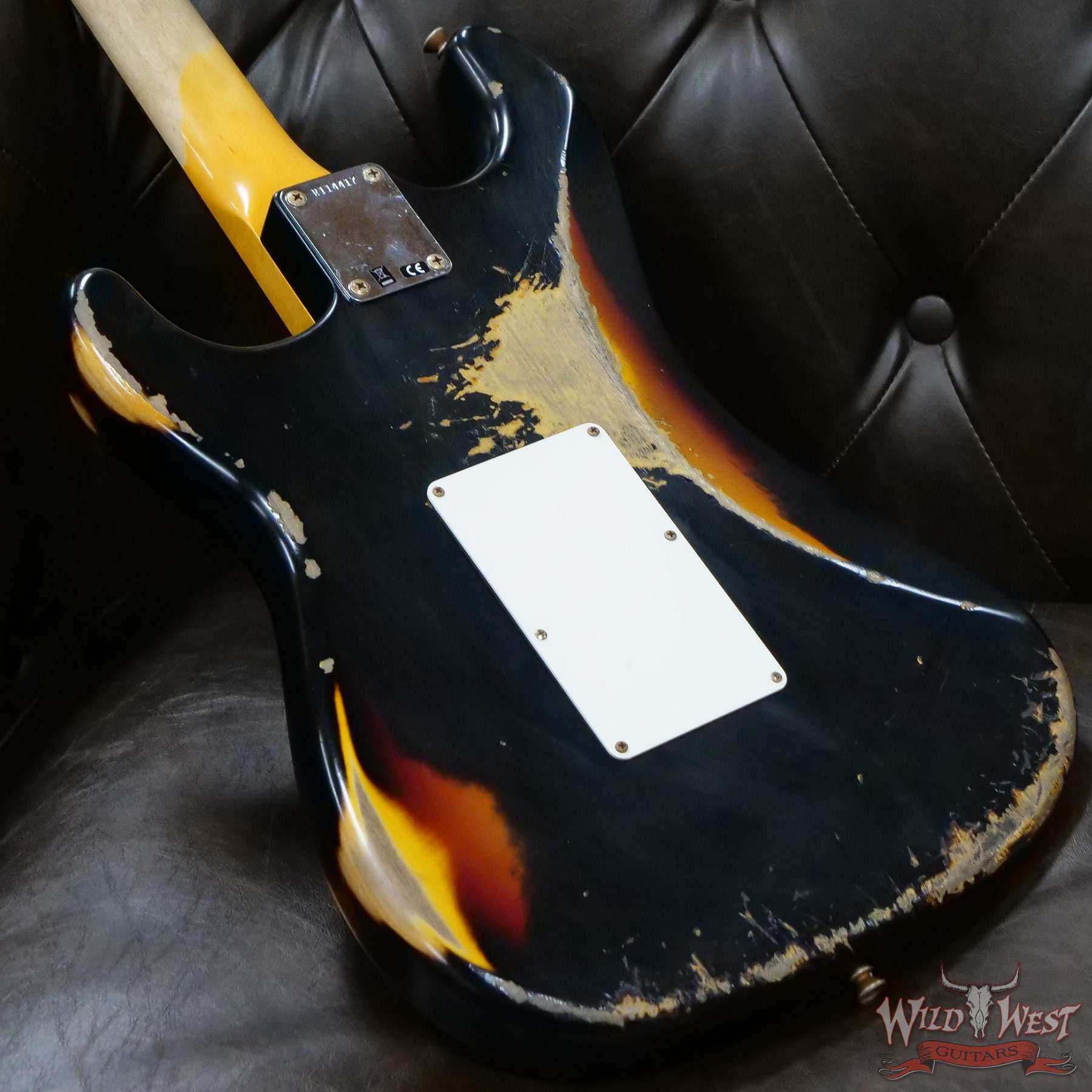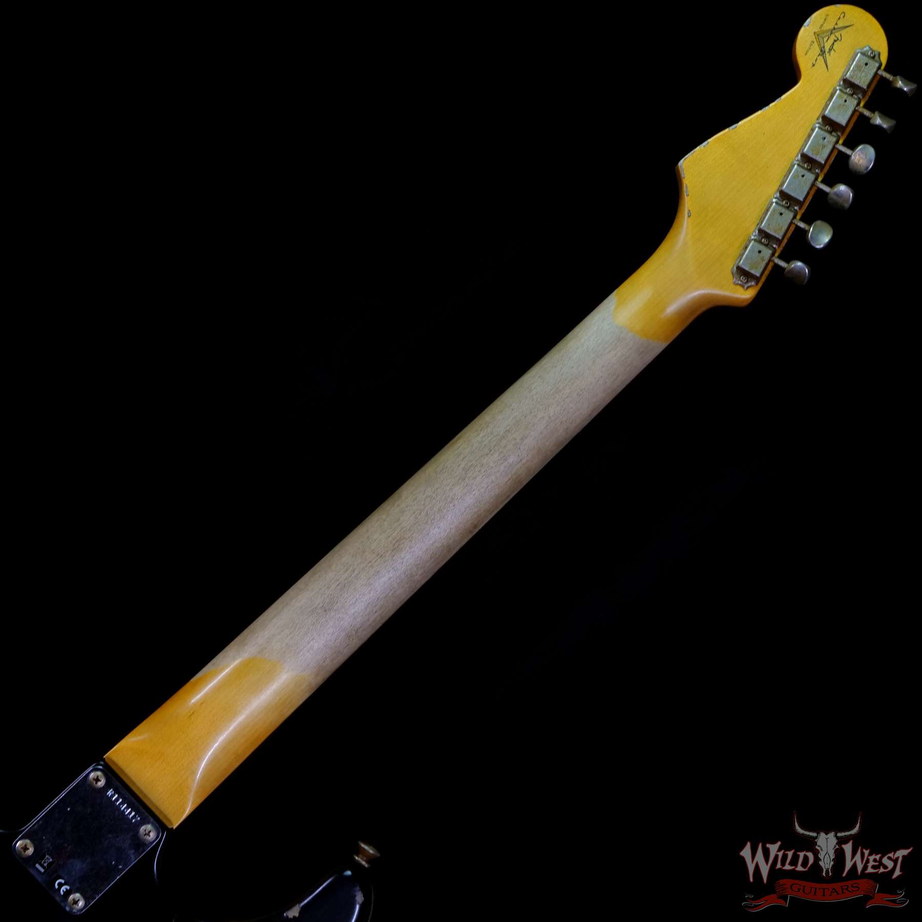 White Lightning (Black Lightning) Strikes The Dusty Plains of The Wild West! White Lightning rips all day n’ rocks all night with traditional Fender tremolo system firepower. The molten Wild West Fender Custom Shop Exclusive Heavy Relic Dirty Neck monster rules the rock n’ roll wastelands, packing a pair of Fat 50s relic single coils and a killer DiMarzio Tone Zone humbucker in the bridge position.