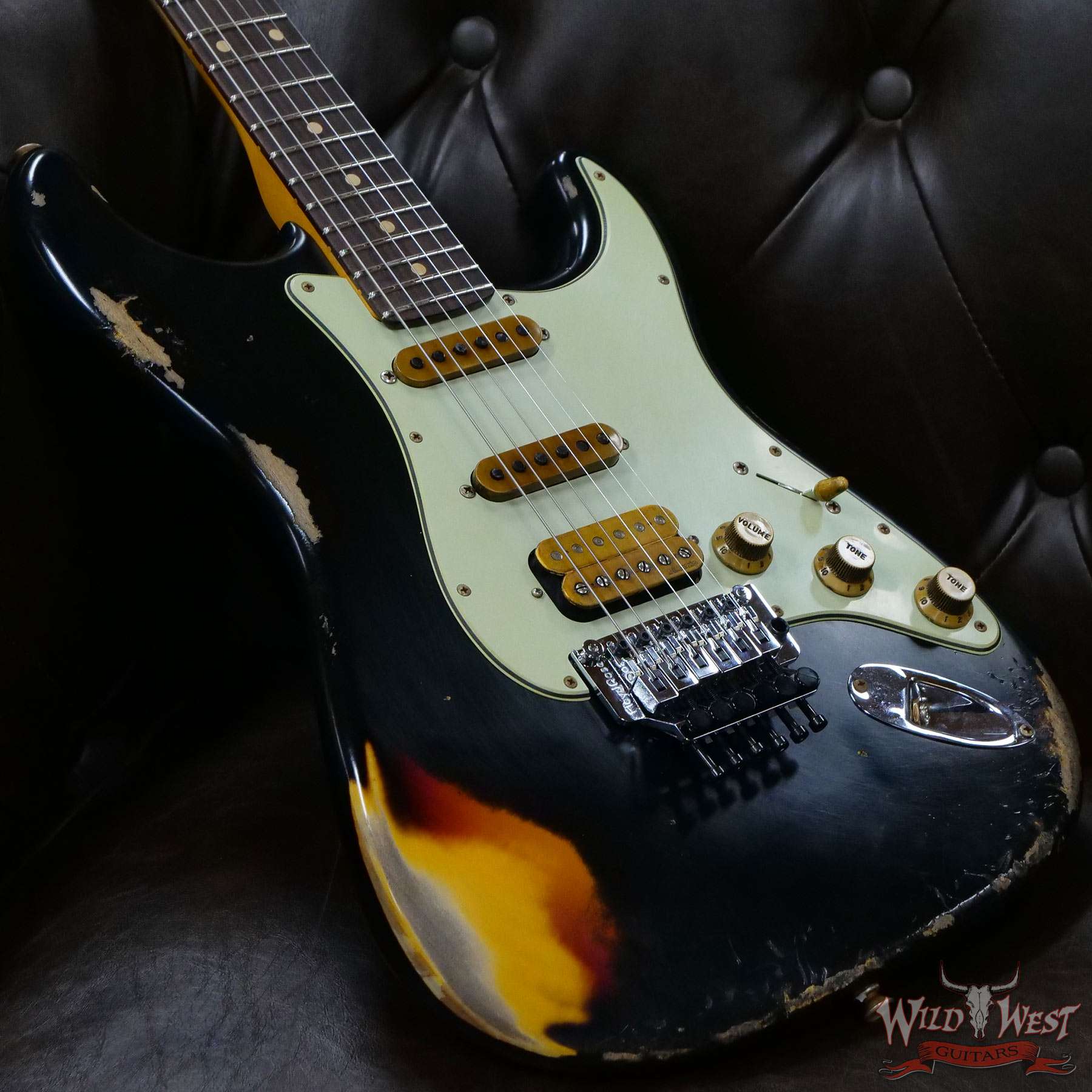 Fender Custom Shop Wild West Black Lightning Stratocaster HSS Floyd Rose Rosewood Board 22 Frets Heavy Relic 3 Tone Sunburst