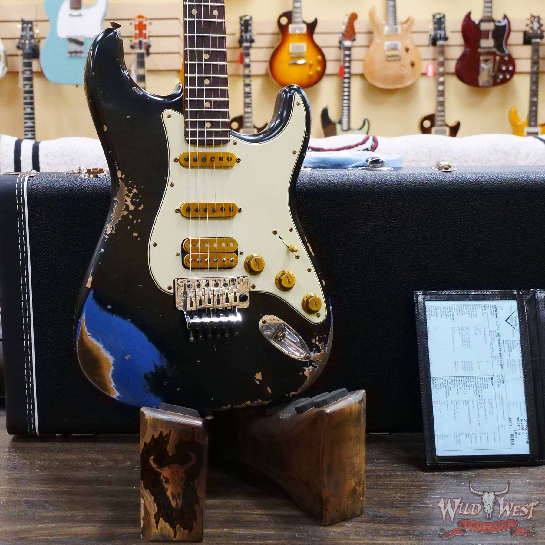 Fender Custom Shop Wild West Black Lightning Stratocaster HSS Floyd Rose Rosewood Board 22 Frets Heavy Relic Lake Placid Blue