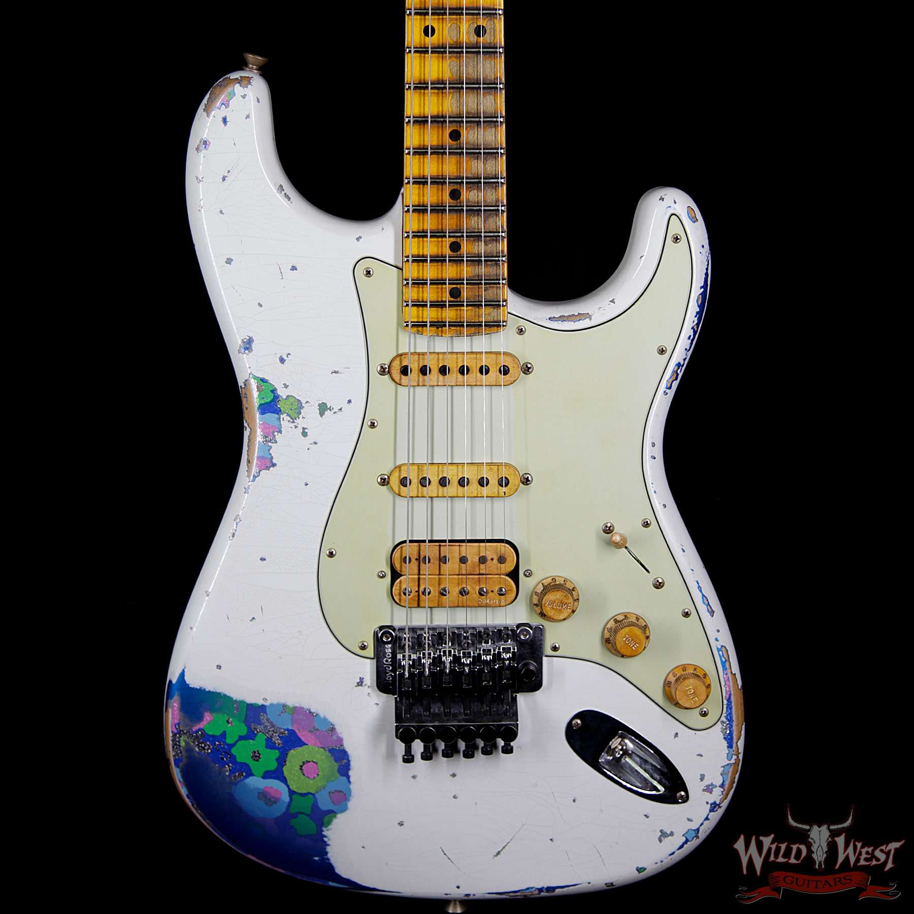 Fender Custom Shop Wild West Exclusive White Lightning Stratocaster HSS Floyd Rose Heavy Relic Maple Neck 22 Frets Blue Flower