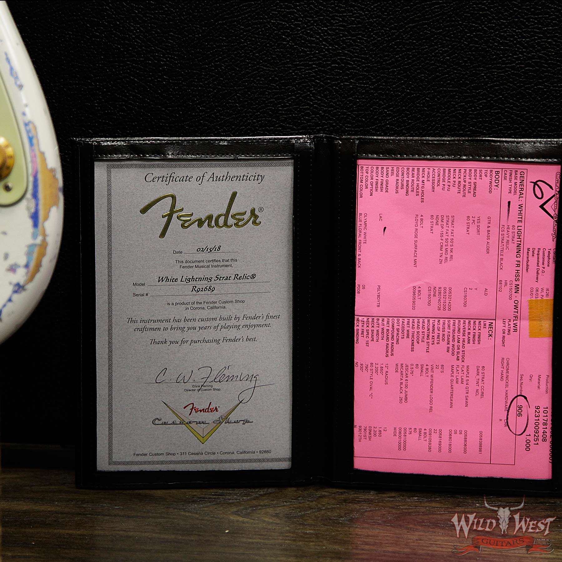 2018 Fender Custom Shop Wild West Exclusive White Lightning Stratocaster HSS Floyd Rose Heavy Relic Maple Neck 22 Frets Blue Flower