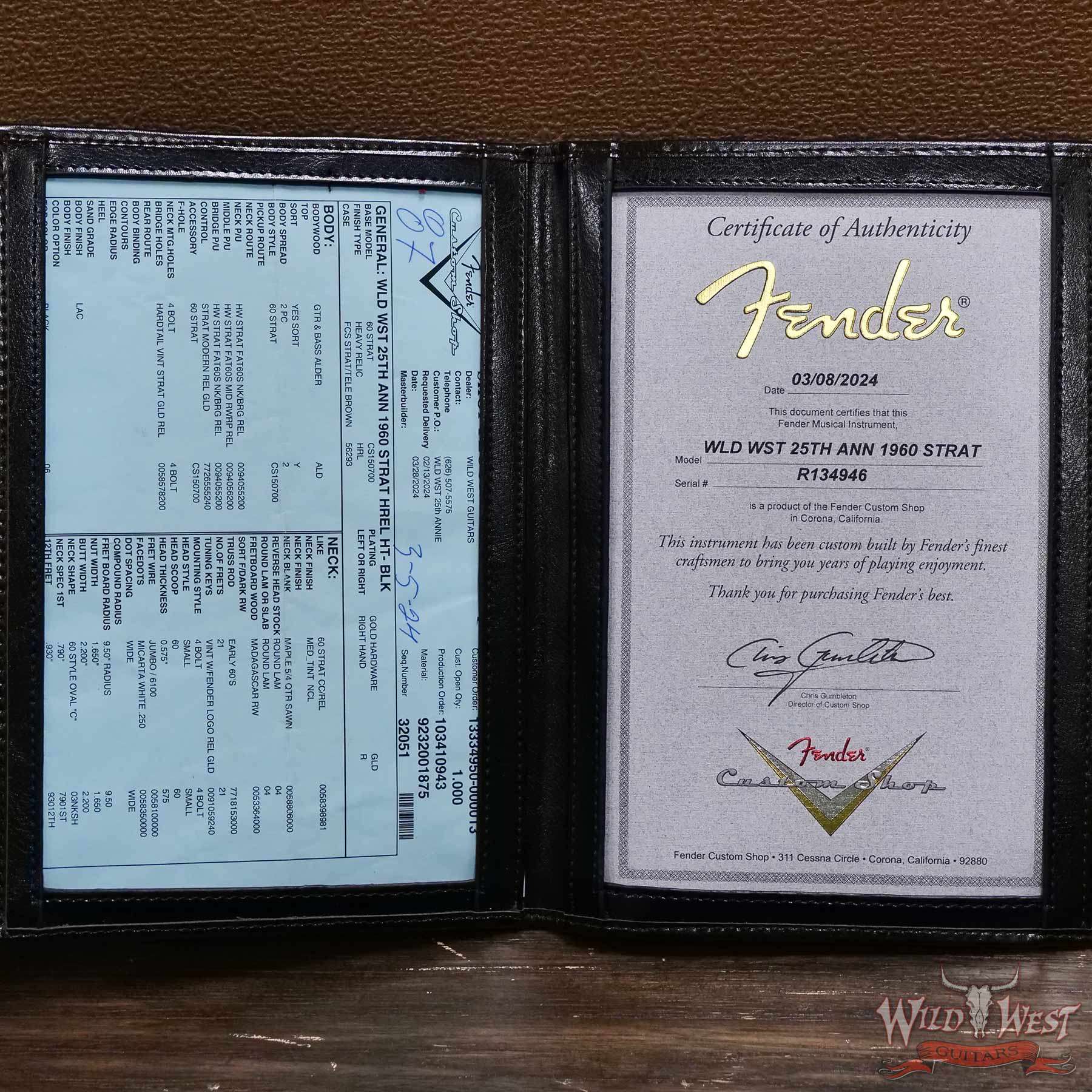 Fender Custom Shop Wild West Guitars 25th Anniversary 1960 Stratocaster Hardtail Madagascar Rosewood Fretboard Heavy Relic Black 7.20 LBS