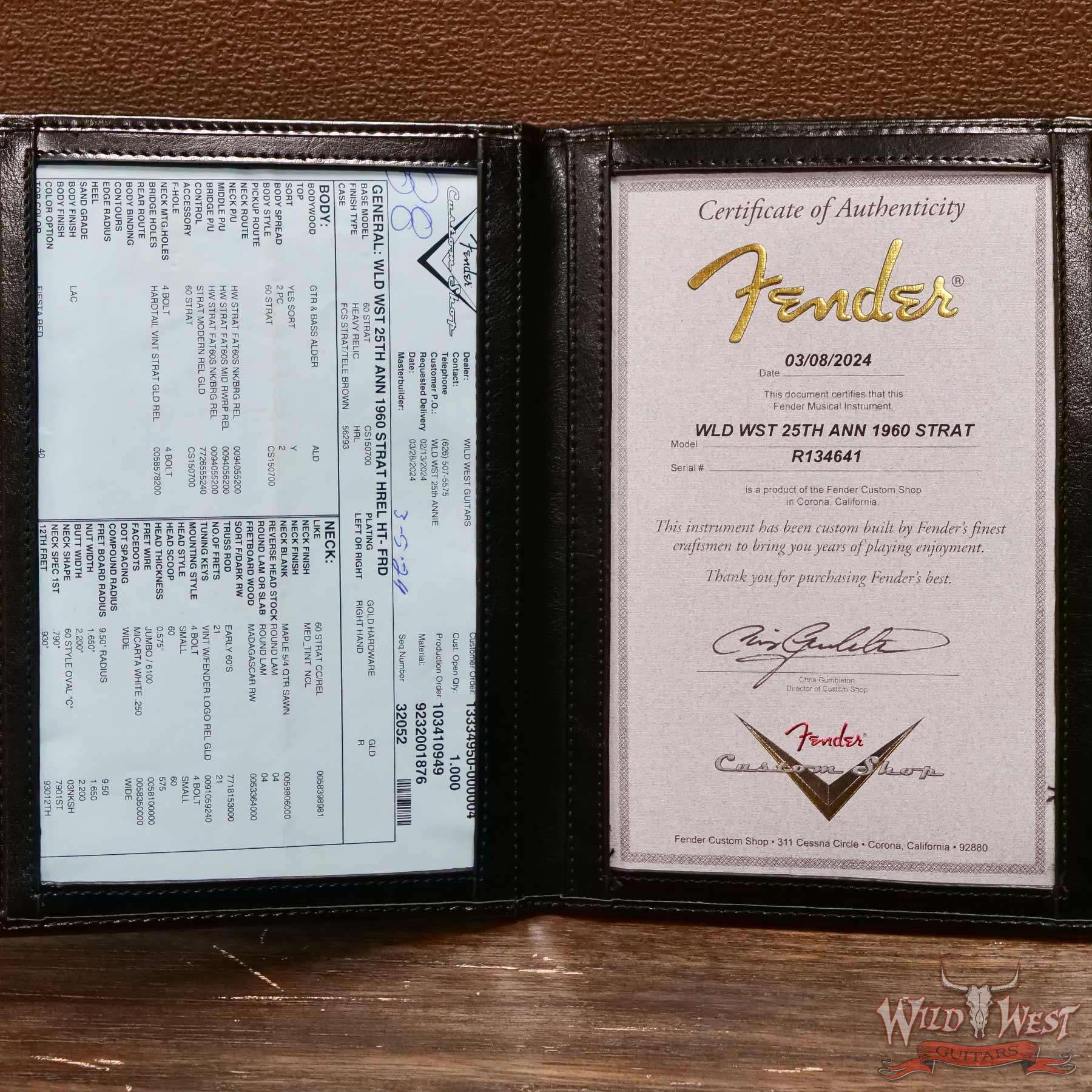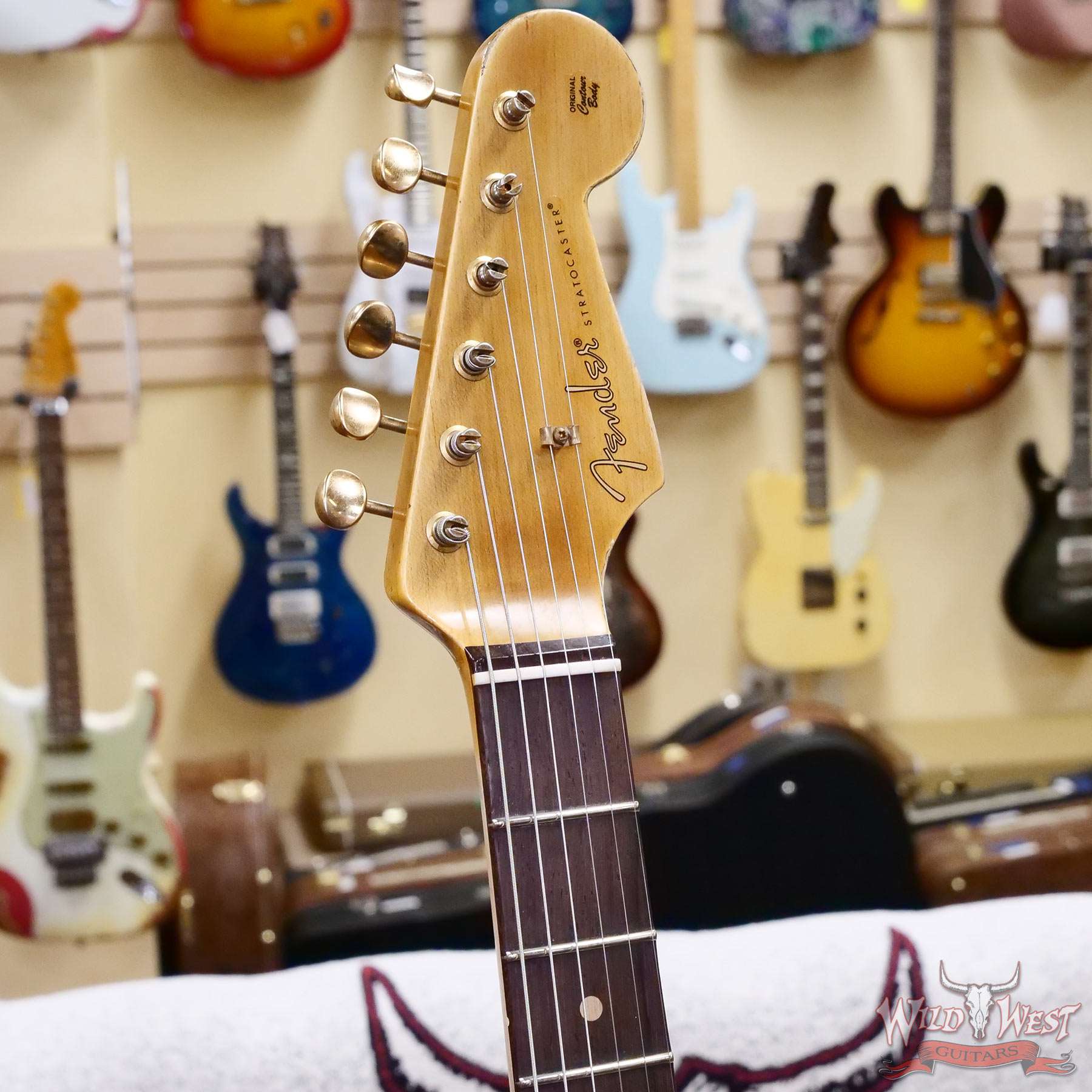 To celebrate the 25th Anniversary of Wild West Guitars opening back in 1999,we have asked the Fender Custom Shop to craft a special limited run of 50 Stratocasters( 25 traditional tremolo/ 25 hardtail versions) to celebrate this Silver Anniversary on our behalf. These guitars will be based on the classic 1960 appointments with several special touches to distinguish this limited run: All the guitars will feature a Madagascar Rosewood fretboard, Hand Wound Fat 60’s single coil pickups, gold hardware, Maple 5/4 Quarter sawn necks, and in a heavy relic finish style featuring many of the classic finishes originally offered in that time period. These will be special instruments that represent our 25-year commitment to offer the best custom shop made guitars to our customers around the world. We would like to thank the many customers who have supported Wild West Guitars since the very beginning as we look forward to our next 25 years.