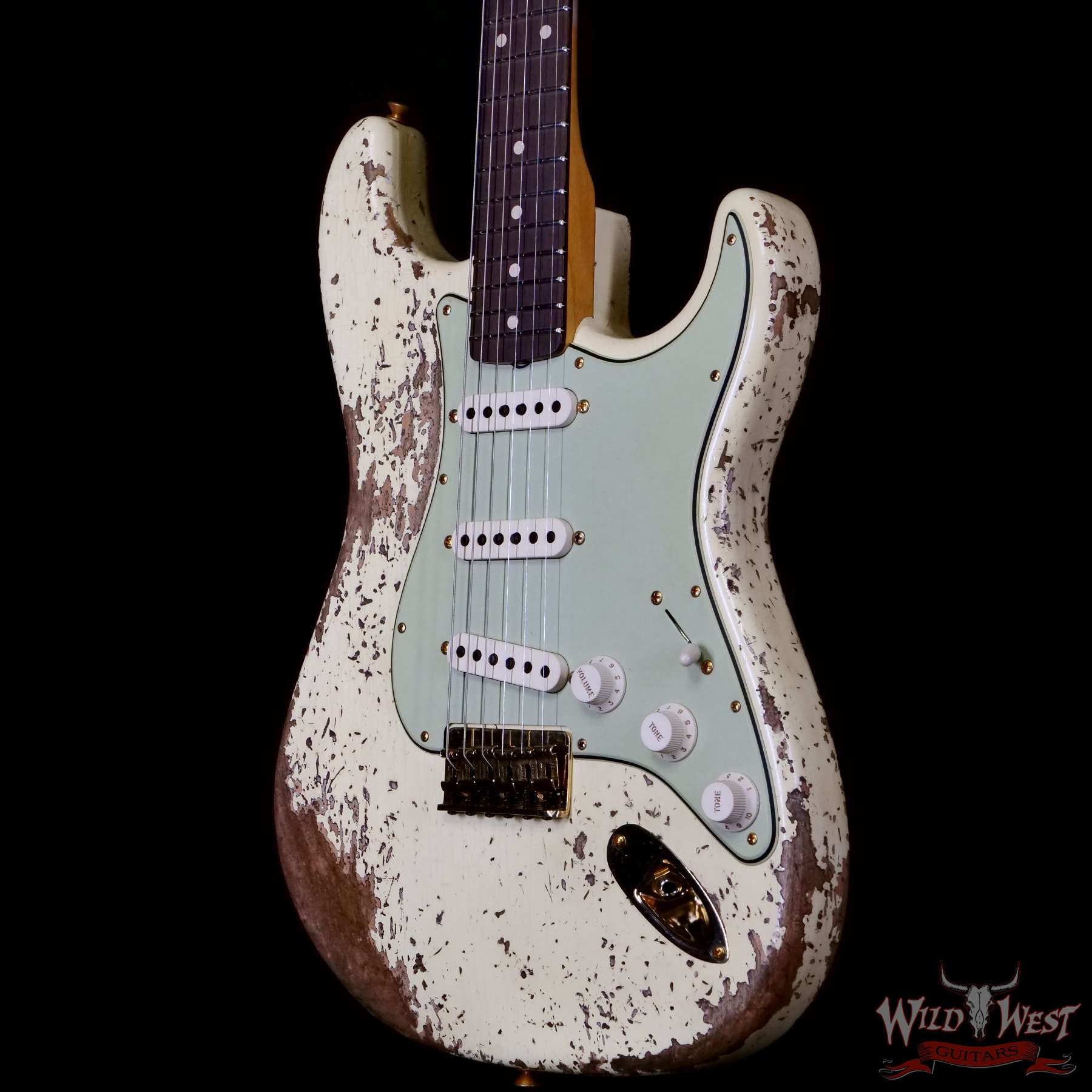 Fender Custom Shop Wild West Guitars 25th Anniversary 1960 Stratocaster Hardtail Madagascar Rosewood Fretboard Heavy Relic Vinatge White 7.15 LBS