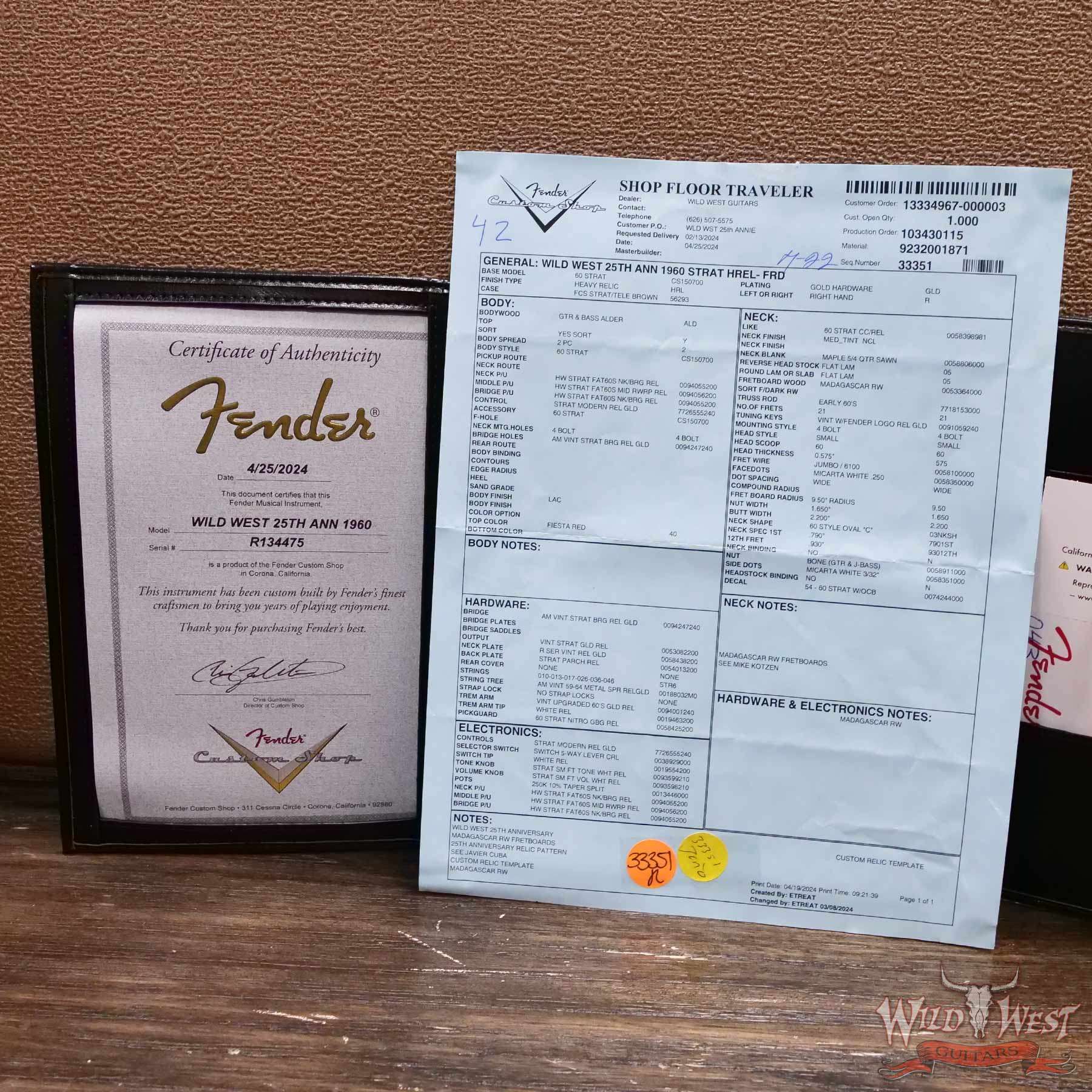 Fender Custom Shop Wild West Guitars 25th Anniversary 1960 Stratocaster Madagascar Rosewood Fretboard Heavy Relic Fiesta Red 7.25 LBS