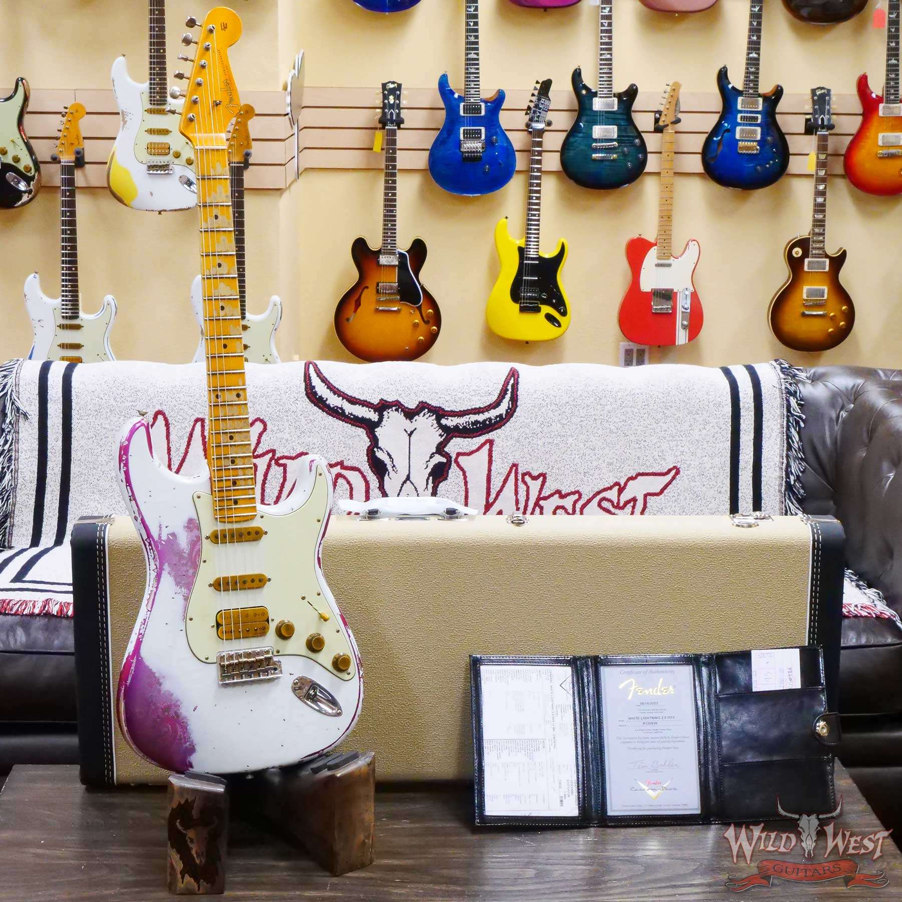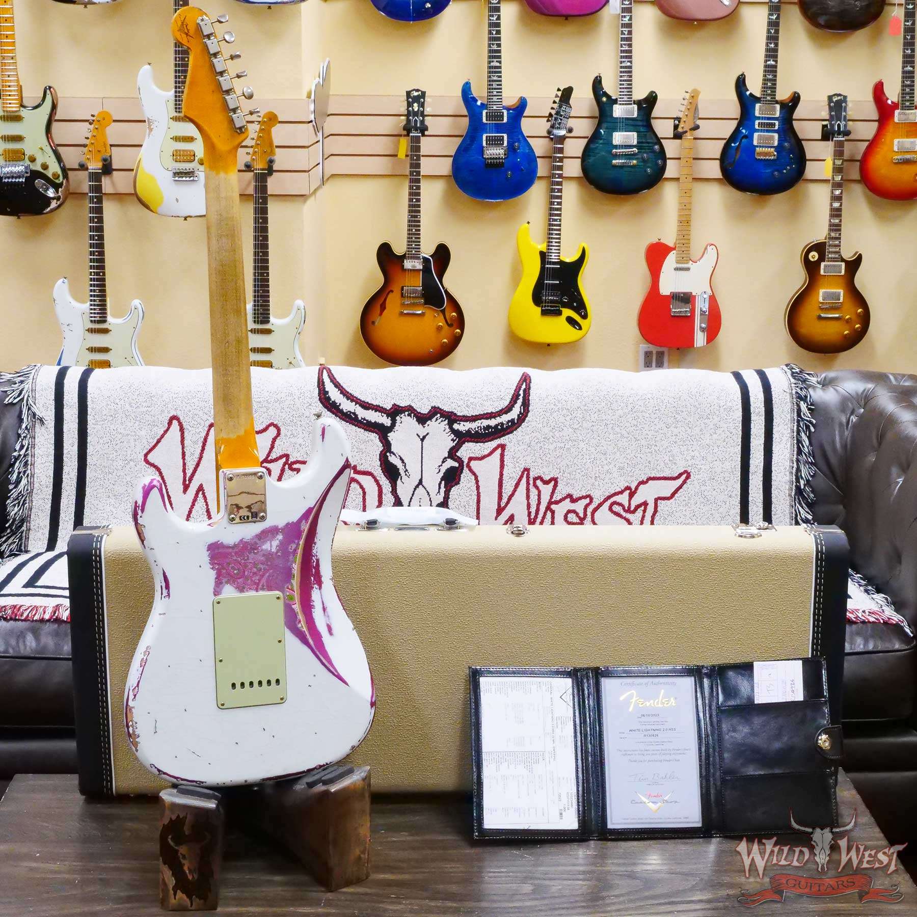 Fender Custom Shop Wild West White Lightning 2.0 Stratocaster HSS Maple Board 22 Frets Heavy Relic Pink Paisley
