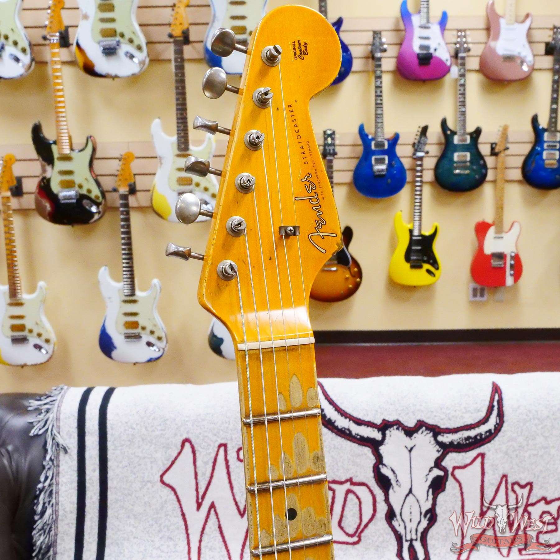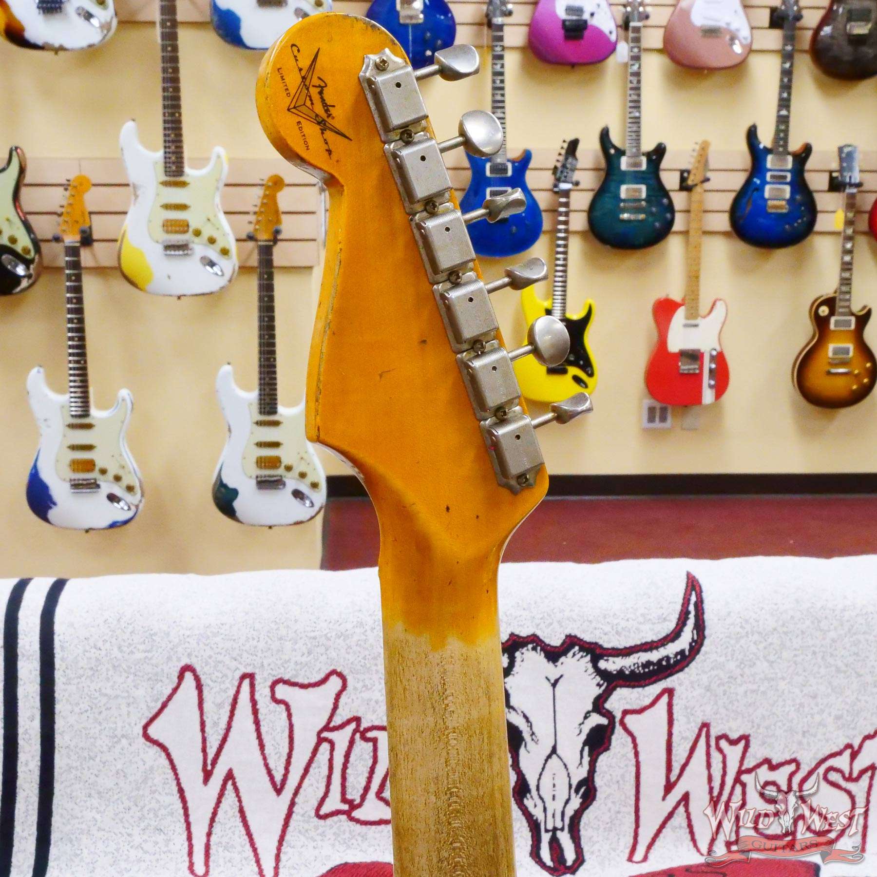 White Lightning Strikes The Dusty Plains of The Wild West! White Lightning rips all day n’ rocks all night with traditional Fender tremolo system firepower. The molten Wild West Fender Custom Shop Exclusive Heavy Relic Dirty Neck monster rules the rock n’ roll wastelands, packing a pair of Fat 50s relic single coils and a killer DiMarzio Tone Zone humbucker in the bridge position.