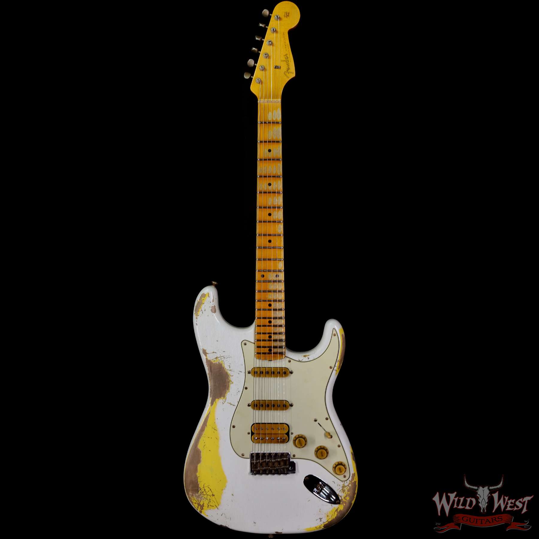Fender Custom Shop Wild West White Lightning 2.0 Stratocaster HSS Rosewood Board 21 Frets Heavy Relic Graffiti Yellow