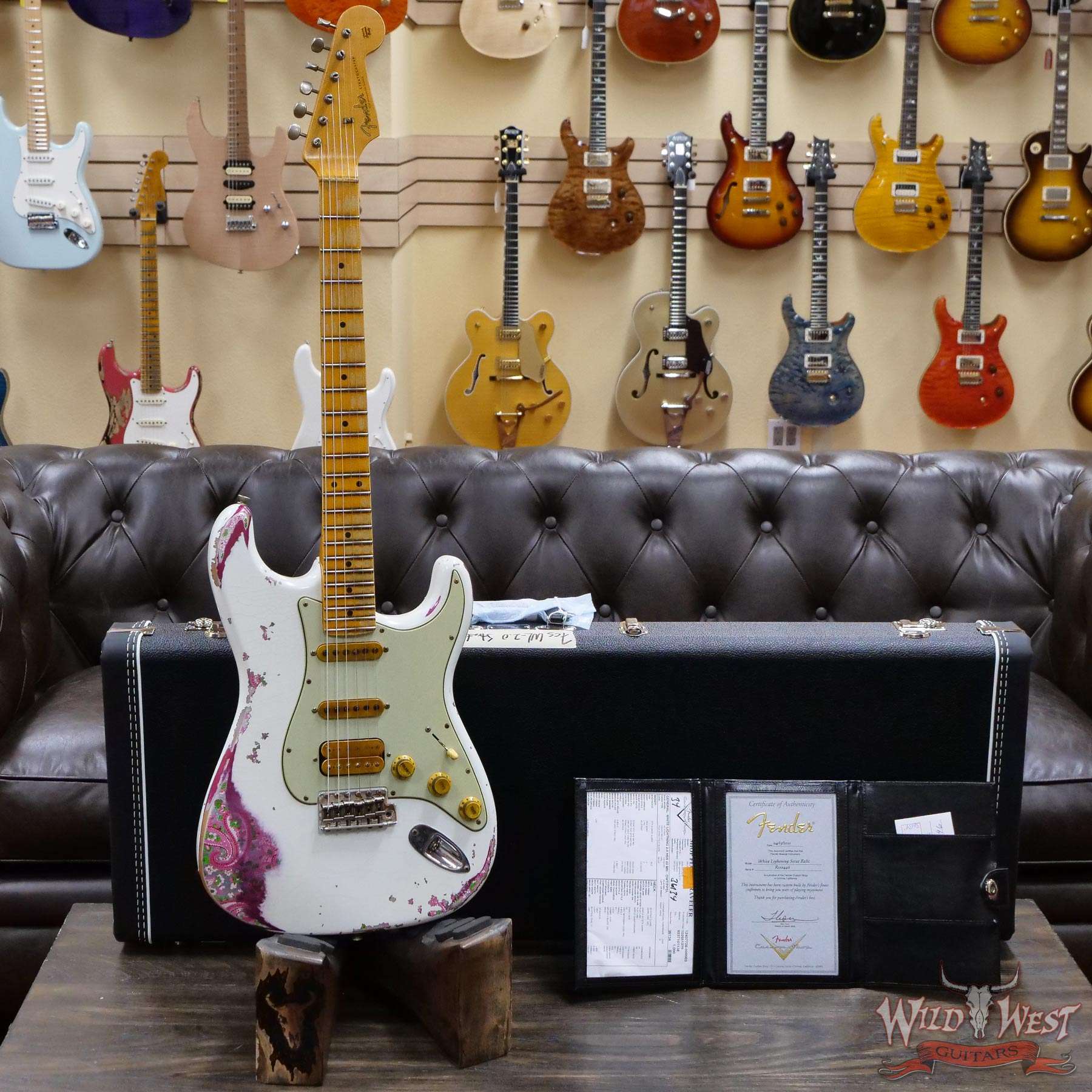 Fender Custom Shop Wild West White Lightning Stratocaster 2.0 Heavy Relic 22 Frets Maple Fingeboard Pink Paisley