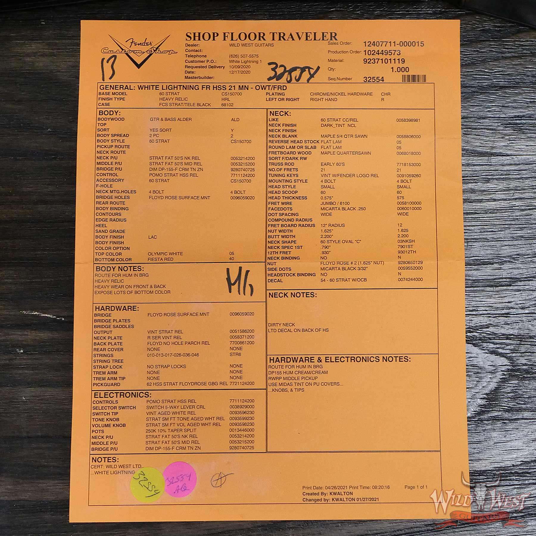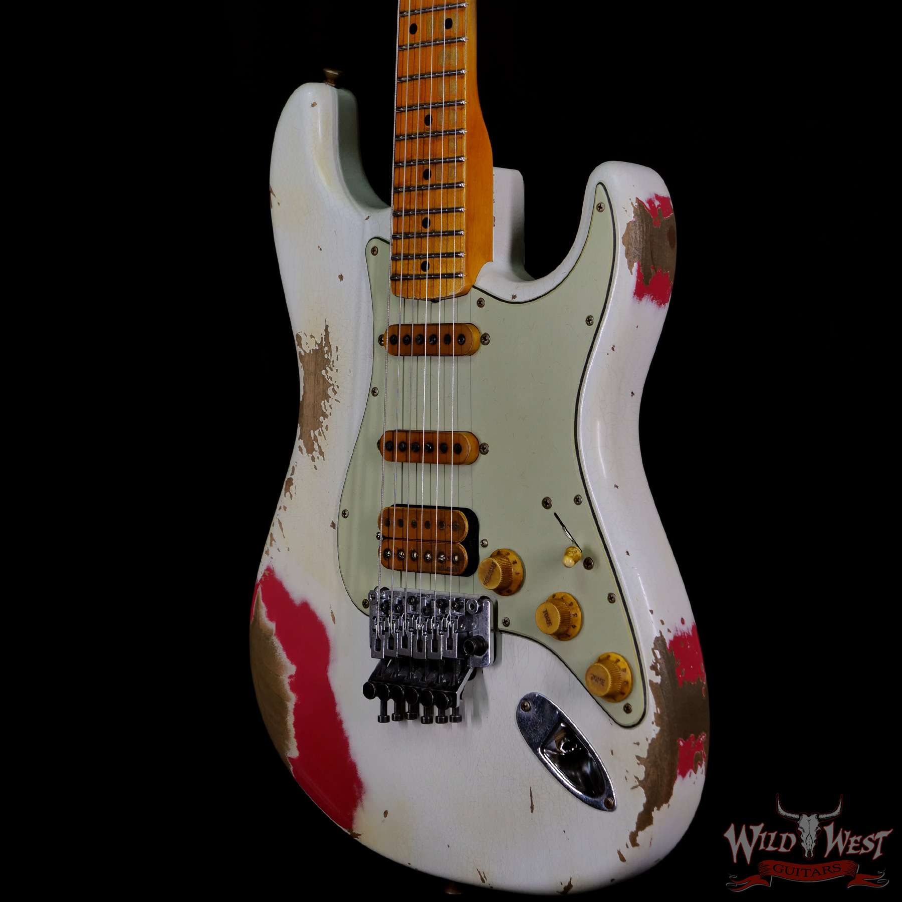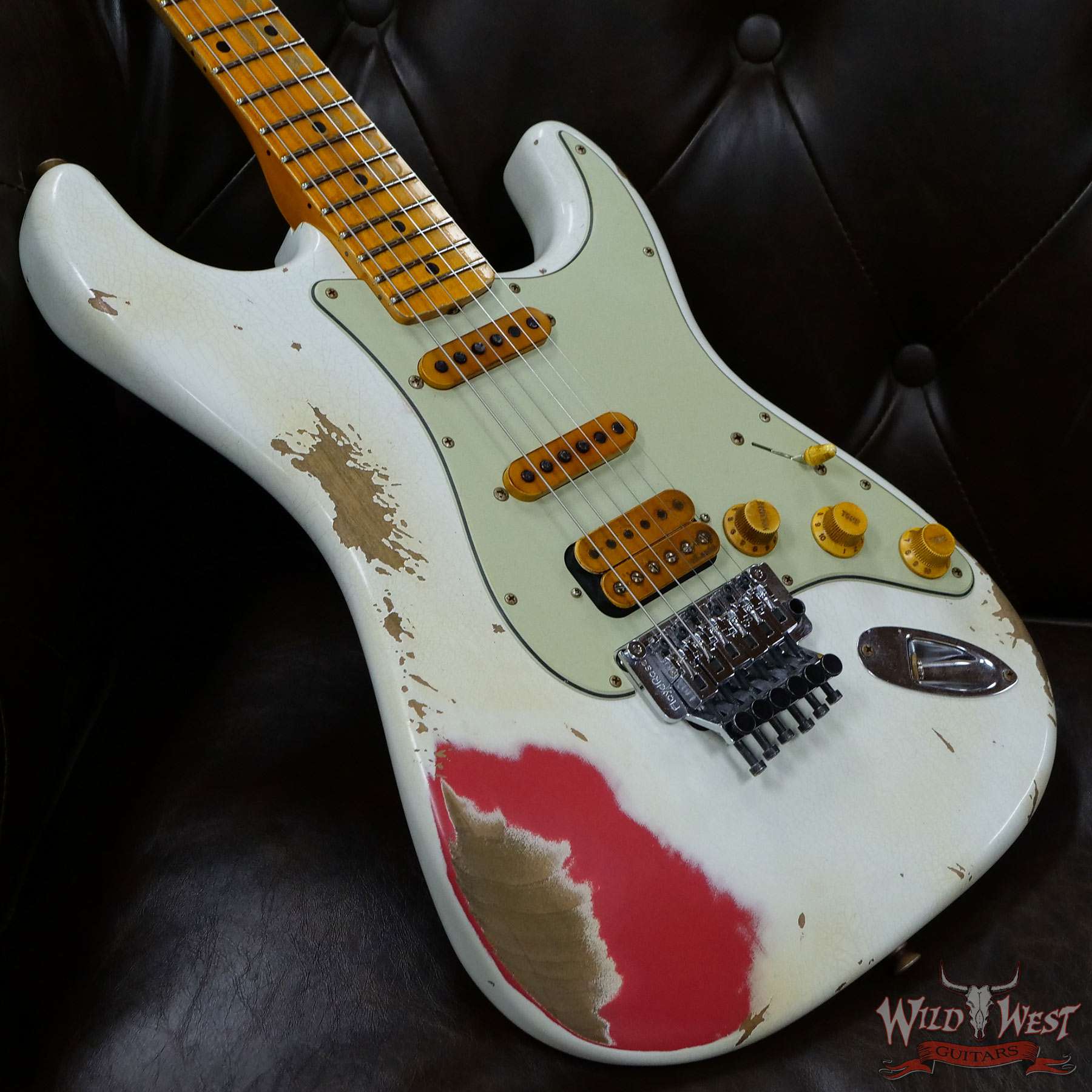 Fender Custom Shop Wild West White Lightning Stratocaster Floyd Rose Heavy Relic Maple Board 21 Frets Fiesta Red