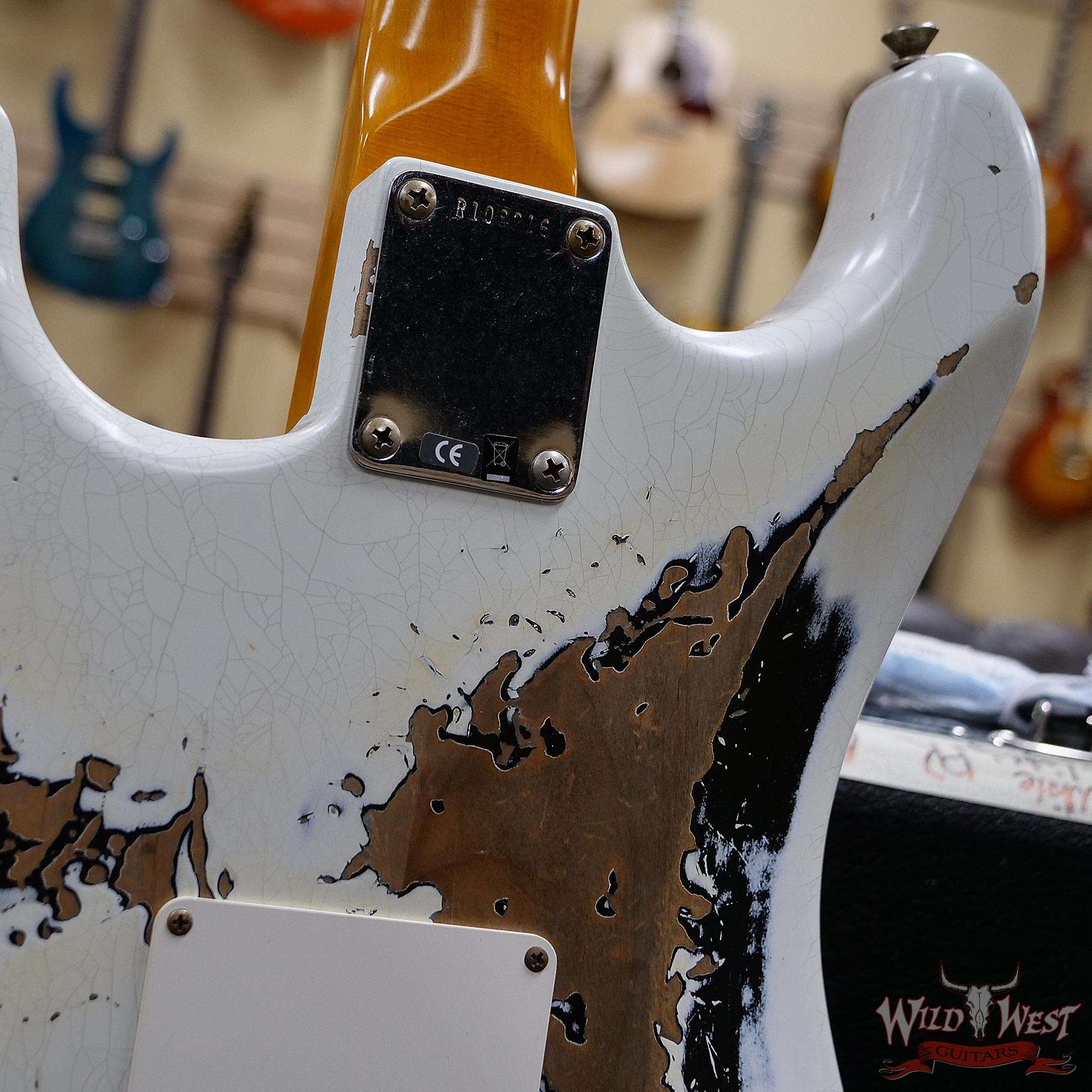 White Lightning Strikes The Dusty Plains of The Wild West! White Lightning rips all day n’ rocks all night with traditional Fender tremolo system firepower. The molten Wild West Fender Custom Shop Exclusive Heavy Relic Dirty Neck monster rules the rock n’ roll wastelands, packing a pair of Fat 50s relic single coils and a killer DiMarzio Tone Zone humbucker in the bridge position.