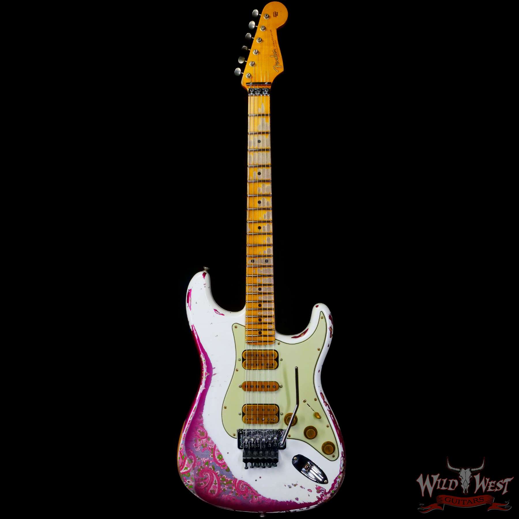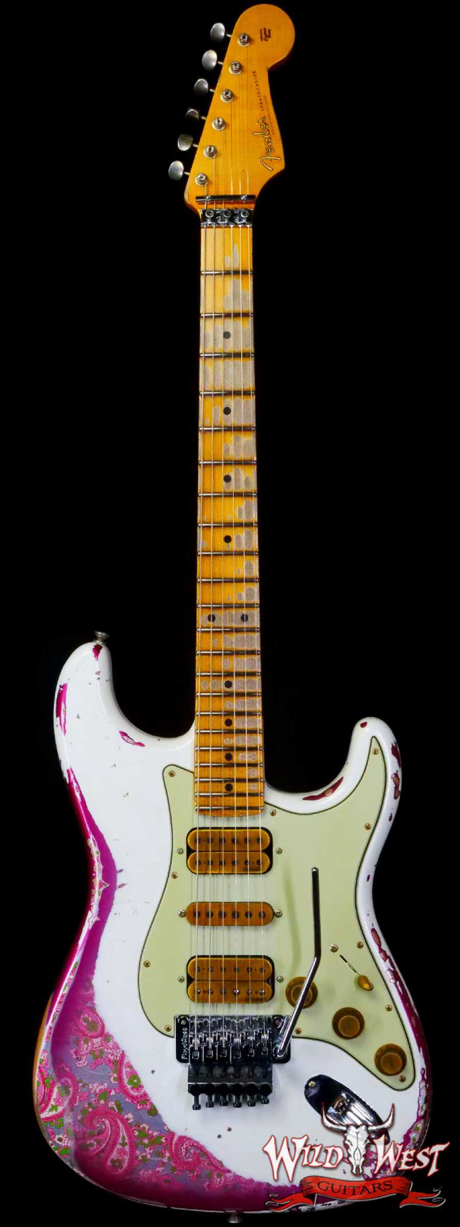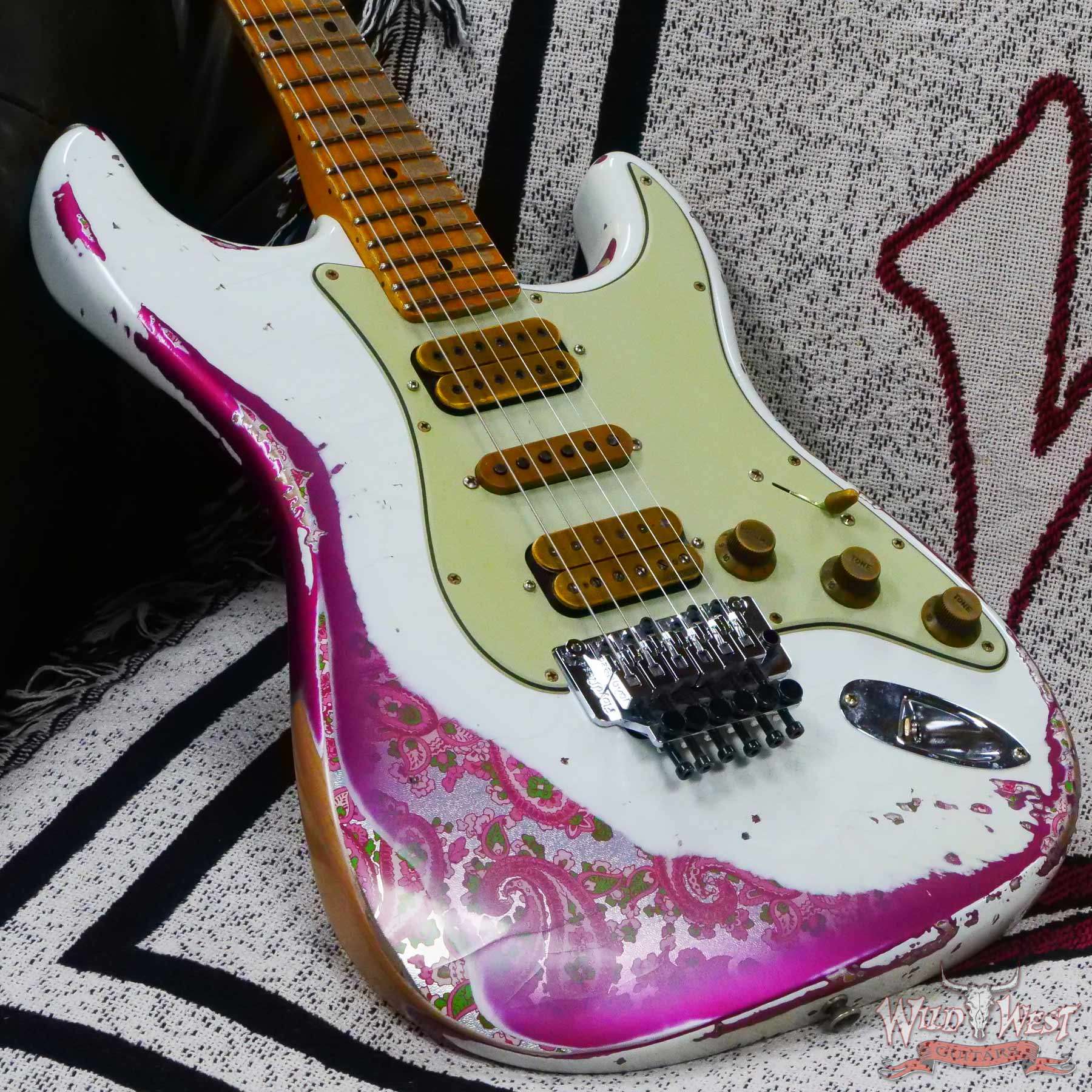 Fender Custom Shop Wild West White Lightning Stratocaster HSH Floyd Rose Maple Board 22 Frets Heavy Relic Pink Paisley